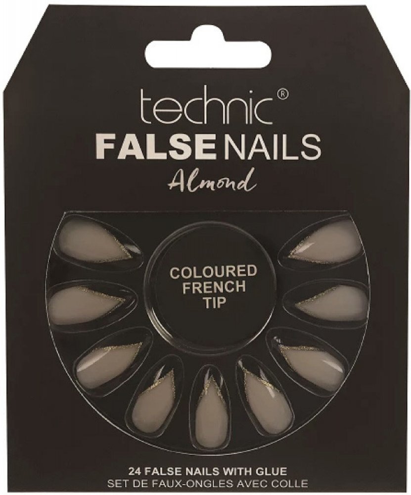 Technic False Nails Umělé nalepovací nehty bílé černozlaté Almond Colored French Tips 24 nehtů s lepidlem