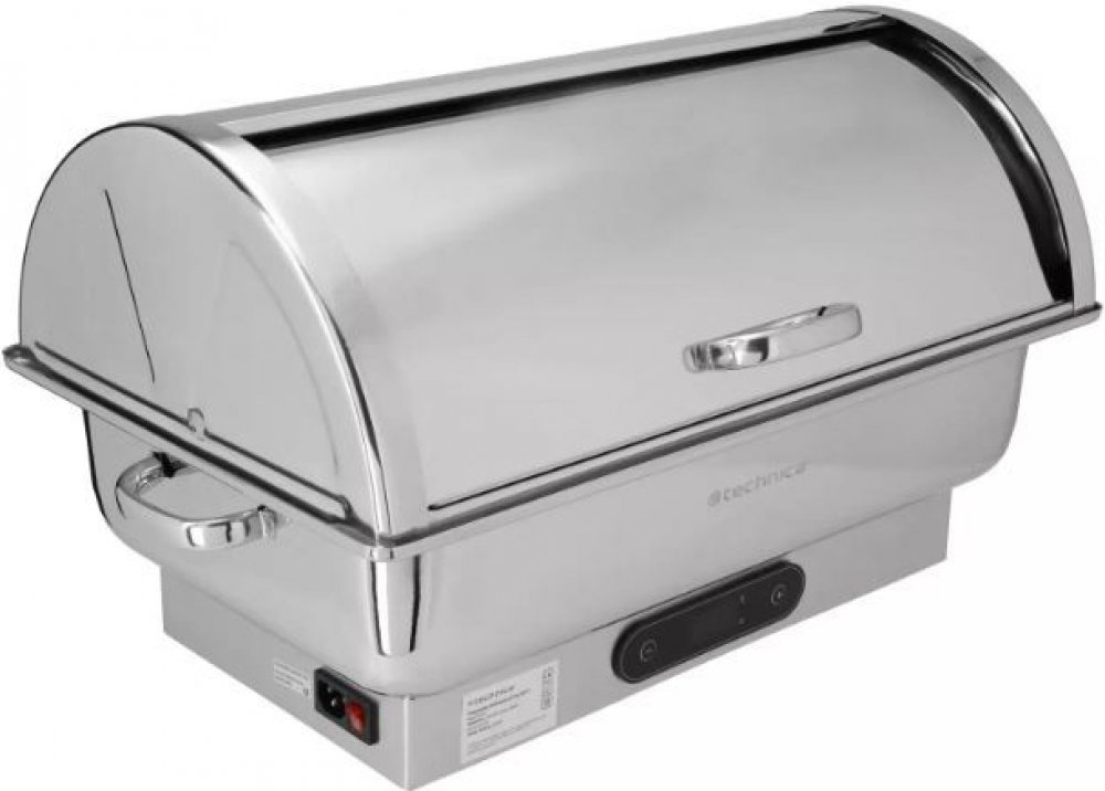 Elektrický ohřívač jídla, pro servírování potravin s digitálním displejem. Možnost nastavení teploty od 30°C do 100°C. Víko typu roll-top 90° ulehčuje používání. Topné těleso je pod vanou, proto se na něm nebude usazovat vodní kámen. Speciálně vyprofilované okraje zabraňují tomu, aby se víko omylem strhlo a spadlo. Součástí je gastronádoba GN 1/1 o hloubce 6,5 cm. Úchyty pro snadnější přenášení. Gumové nožky zabraňují klouzání chafingu po stolu.