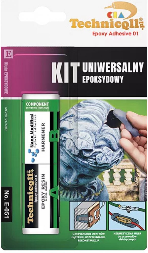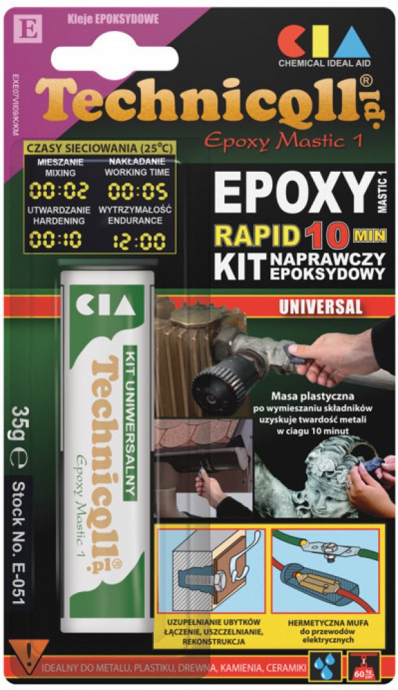 Dvousložkové lepidlo s konzistencí plastelíny a velmi rychlým vytvrzováním - během několika minut. Vytváří trvalý a těsný spoj Použitelný u většiny výrobků z oceli, litiny, hliníku, nerezové oceli, skla, dřeva, keramiky a plastů. Chrání kovové díly před korozí, a je velmi dobrý elektrický izolant. Používá se v domácnostech, automobilovém průmyslu a průmyslu obecně.