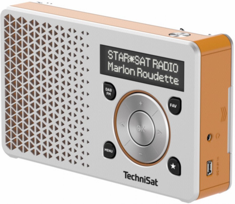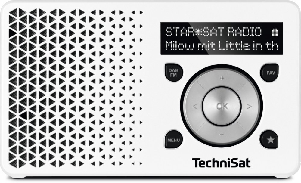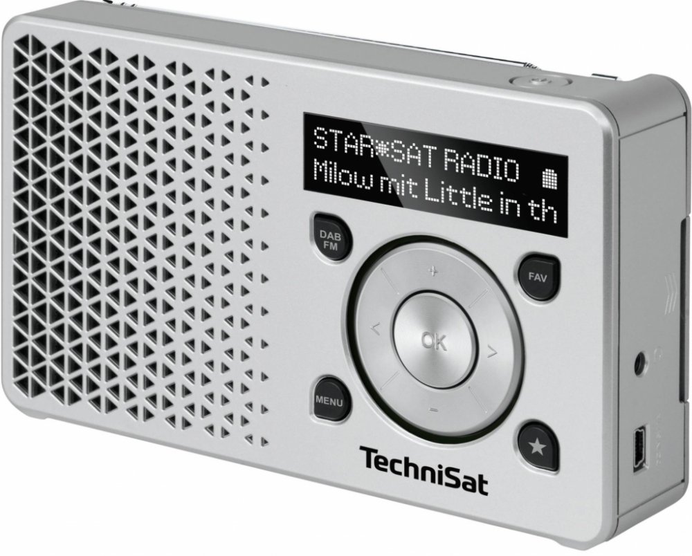 Přenosné digitální rádio TechniSat DigitRadio 1 pro příjem rozhlasových FM a DAB+ stanic s vestavěným akumulátorem. Integrovaný reproduktor umístěný v unikátně navrženém roštu, zajišťuje křišťálově čistý zvuk. Snadné ovládání díky velkým pochromovaným tlačítkům a jasnému OLED displeji. Vestavěná baterie umožňuje mobilní provoz až 10 hodin poslechu rádia a lze ji vyměnit. Uložení až 20 FM a 20 DAB stanic. Hlavní vlastnosti - Příjem současného analogového FM rádia - Příjem nového digitálního DAB+ rádia - Integrovaný akumulátor s výdrží až 10 hodin - Mono reproduktor s výkonem 1 W (RMS) - Předvolby: až 20 stanic pro DAB+ a dalších 20 stanic pro FM - Kvalitní OLED displej - Zabudovaná teleskopická anténa - Vyrobeno v Německu - Mini USB port pro napájení, nebo nabíjení baterie - Konektor pro sluchátka 3,5 mm jack - Elegantní design a kvalitní materiály - Různé barevné varianty Výborný zvuk a moderní vzhled Srovnatelné reproduktorové systémy obvykle vyžadují mnohem více prostoru. Aby byl zachován kompaktní design, byl inženýry v Drážďanech vyvinut koncept s přídavnou pasivní basovou membránou. Rádio díky tomu dosahuje optimálního podání basů, středů, výšek i mluveného slova. Kvalitní OLED displej Použitý bílý OLED displej dosahuje vysokého jasu a vynikajícího kontrastu. Díky tomu je snadno čitelný ze všech úhlů. Nízká spotřeba energie OLED displejů navíc šetří životnost baterie. Technické informace Připojení: - 1x Mini USB port pro nabíjení a napájení - 1x konektor pro sluchátka (3,5 mm Jack) Spotřeba energie: - V provozu: 2,39 W - Standby: 0.87 W Funkce: - Předvolby DAB+: 20 stanic - Předvolby FM: 20 stanic Napájení: - Baterie: Li-lon 3,7 V / 1050 mAh - Životnost baterie: Až 10 hodin - Jmenovité napětí: 230 V - Frekvence: 50 Hz - Napájení: 5V / 1A Displej: - OLED displej dobře čitelný i z úhlu Audio: - Mono reproduktor - Výkon systému: 1 W (RMS) OSD jazyky: Česky, Německy, Anglicky, Francouzky, Polsky Rádio / příjem: - DAB+: 174 - 240 MHz - FM: 87,5 - 108 MHz - Anténa: teleskopická anténa pro příjem DAB+ / FM Pracovní prostředí: - Vlhkost: 5 - 90% relativní vlhkosti (nekondenzující) - Teplota: 5 - 35 °C Rozměry a váha: - Váha balení: 514 g - Váha přijímače: 276 g - Rozměry zařízení (Š x V x H): 15,50 x 9,10 x 3,10 cm - Rozměry balení (Š x V x H): 17,00 x 17,30 x 4,70 cm Obsah balení: - TechniSat DigitRadio 1 - baterie - napájecí adaptér - USB kabel - návod k použití