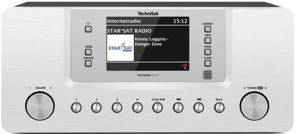 DIGITRADIO 574 IR je stacionární internetové stereofonní rádio, které umožňuje přehrávat hudbu z mnoha zdrojů. Kromě klasických DAB+ a FM stanic máte přístup k tisícům internetových rozhlasových stanic z celého světa. Pro každý režim příjmu si můžete uložit 20 předvoleb - vašich oblíbených stanic - a kdykoli je tak snadno a rychle vybrat. Nejen milovníci rádia si však s tímto digitálním rádiem přijdou na své. Díky streamování zvuku přes Bluetooth udělá DIGITTRADIO 574 IR radost i těm, kteří mají svou oblíbenou hudbu nebo podcasty uložené ve svém chytrém telefonu nebo streamovací/hudební službě. Stačí vybrat požadovaný obsah, streamovat jej do DIGITRADIO 574 IR a vychutnat si výkonný stereofonní zvuk. Přehrávače můžete připojit i pomocí kabelu (konektor AUX). Prostřednictvím USB můžete přehrávat hudbu z externích datových USB nosičů, nebo nabíjet zařízení s USB připojením, například váš smartphone. Čtyřpalcový barevný displej s podporou obrázků a možností stmívání je zasazen do elegantního předního panelu s rovnými liniemi a zobrazuje informace o programu a skladbách i čas.