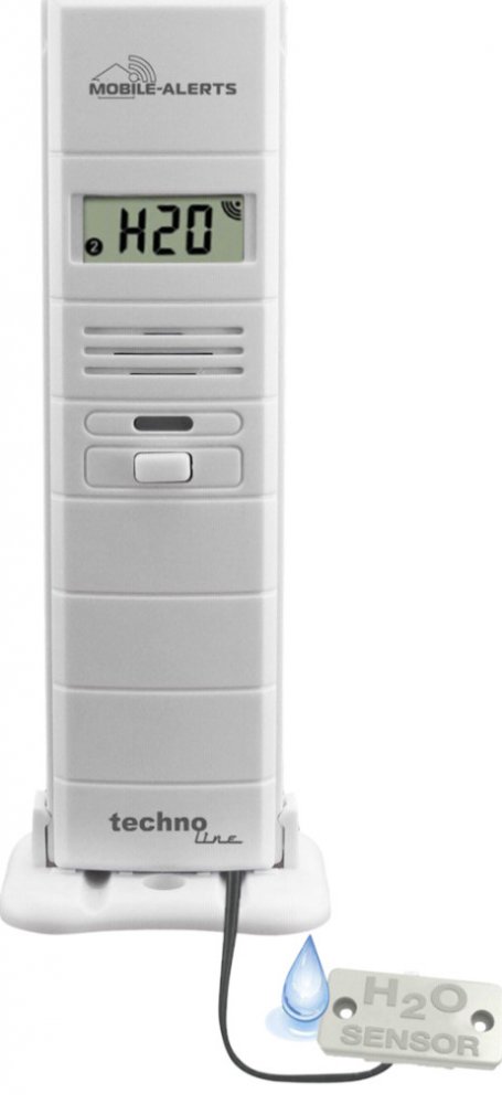 Bezdrátové čidlo pro měření teploty a relativní vlhkosti a kabelem pro detekci vody MA10350 je určeno pro domácí monitorovací systém Technoline MOBILE-ALERT.