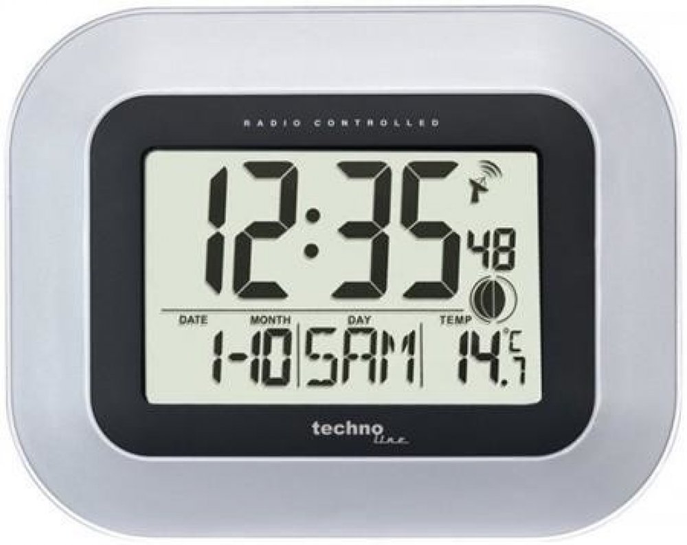 - digaitální nástěnné hodiny s možností postavení velikost displeje 82 x 129 mm čas řízený rádiovým signálem DCF-77 budík s funkcí opakovaného buzení (SNOOZE) budící tón změní 4 x interval datum měření vnitřní teploty napájení 2 ks baterií 1,5 V typ AA (tužkové, nejsou součástí dodávky) barva stříbrná se šedou