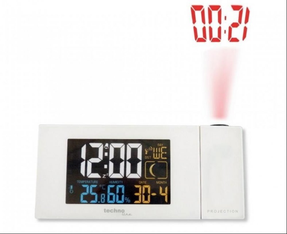 - barevný inverzní displej o rozměrech 82 x 52 mm- velikost číslic na displeji – čas 28 mm, datum 14 mm, zkratka názvu dne 10 mm, vnitřní teplota a vlhkost 14 mm- možnost stálého osvětlení displeje při napájení síťovým adaptérem- mořnost vypnutí displeje i projekce- možnost krátkodobého osvětlení displeje s projekcí na 10 s při napájení na baterie- čas řízený rádiovým signálem DCF-77 s možností manuálního nastavení- 12ti, nebo 24 hodinový formát zobrazení času- budík s funkcí opakovaného buzení Snooze po 10 minutách- buzení zvukovým signálem (8 sekund 1 pípnutí za sekundu, 16 sekund 2 pípnutí za sekundu, a poté 4 pípnutí za sekundu) - datum, zkratka názvu dne- časová zóna -12 až + 12 hodin- barva projekce červená- projekce času a teploty (střídání po 4 s)- otočení tubusu projektoru dopředu a dozadu o 90°- měření vnitřní teploty a relativní vlhkosti- paměť na max a min naměřené hodnoty teploty a relativní vlhkosti s automatickým nulováním v 0:00 hodin- zobrazení teploty ve °C, nebo °F- fáze Měsíce- barva bílá- napájení síťovým adaptérem, nebo bateriemi 2 ks typ AAA (mikrotužkové, nejsou součástí dodávky)- možnost postaveníObsah balení:- budík- síťový adaptér.