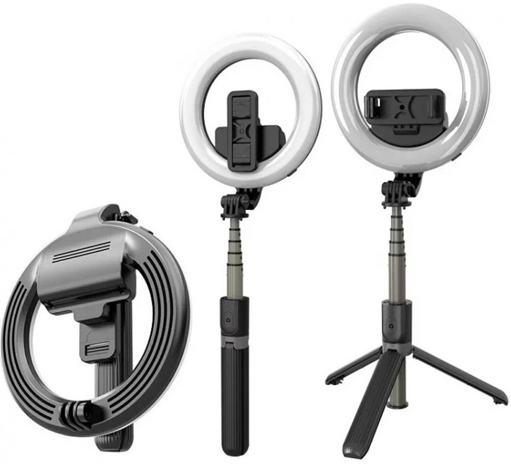 Specifikace: Materiály: hliníková slitina, ABS; Připojení: Kapacita baterie: 1200 mAh; Maximální velikost: 90 cm; Světlo lampy: Kompatibilita: zařízení s úhlopříčkou do 6,5 palce; Režimy světla: teplý, střední, studený; Hmotnost: 280 g.