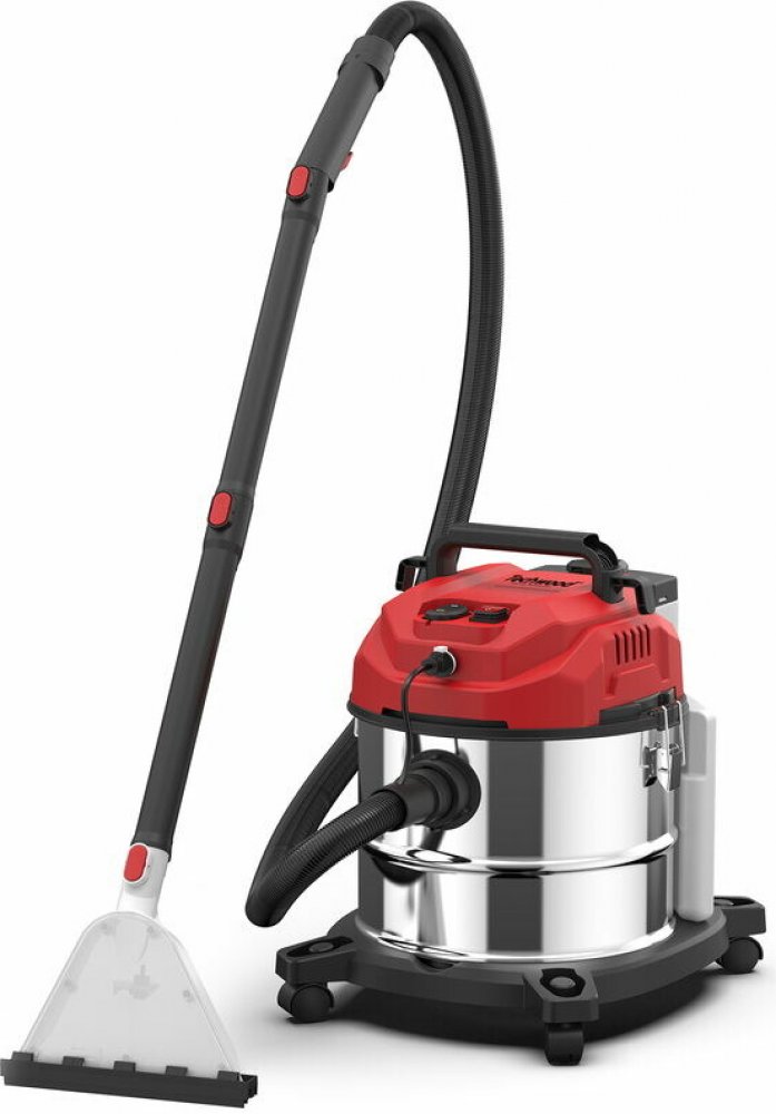 Tepovač, víceúčelový vysavač, sací výkon 17 kPa, výkon 1200 W, kapacita nádoby 20 l, objem nádoby na vodu 4,3 l, hlučnost 87 dB, filtr HEPA, průtok vzduchu 28 l/s, výkon postřiku 800 ml/min, flexibilní hadice 1,5 m, kartáč na koberce a čalounění, štěrbinová tryska, nástavec na odsávání vody
