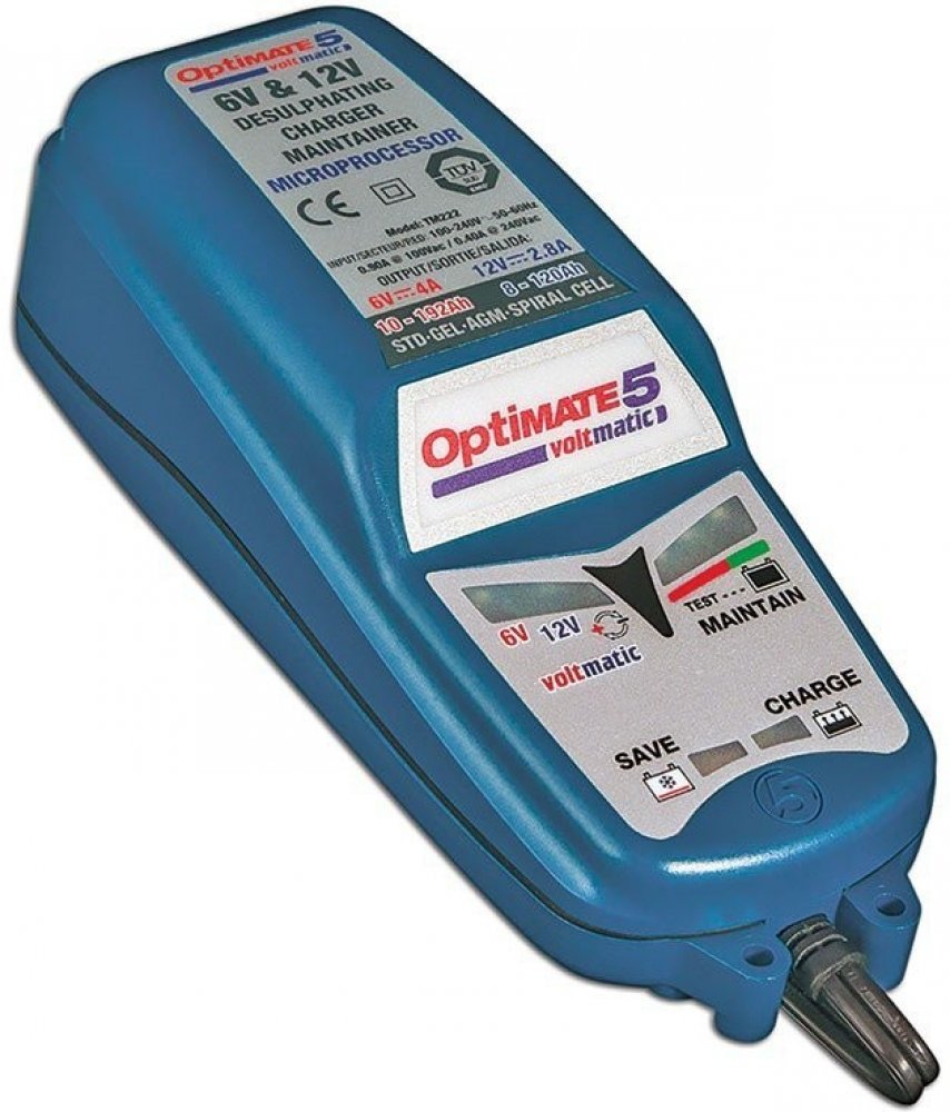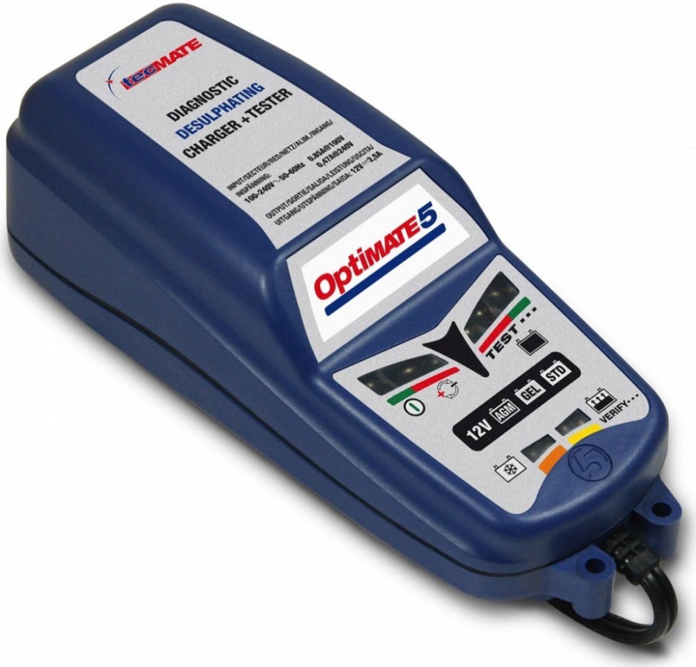 OptiMate5, je nástroj obsahující všechny funkce pro domácí péči o 12V baterii. Automaticky provádí diagnostiku a baterii zotavuje, nabíjí, testuje a optimálně udržuje. Přístroj Optimate5 si zachovává všechny plně automatické, 100% bezpečné a snadno použitelné vlastnosti 1,5 milionu kusů přístrojů OptiMate vyrobených od roku 1995 a navíc přidává 2,8A výstup pro péči o větší baterie.