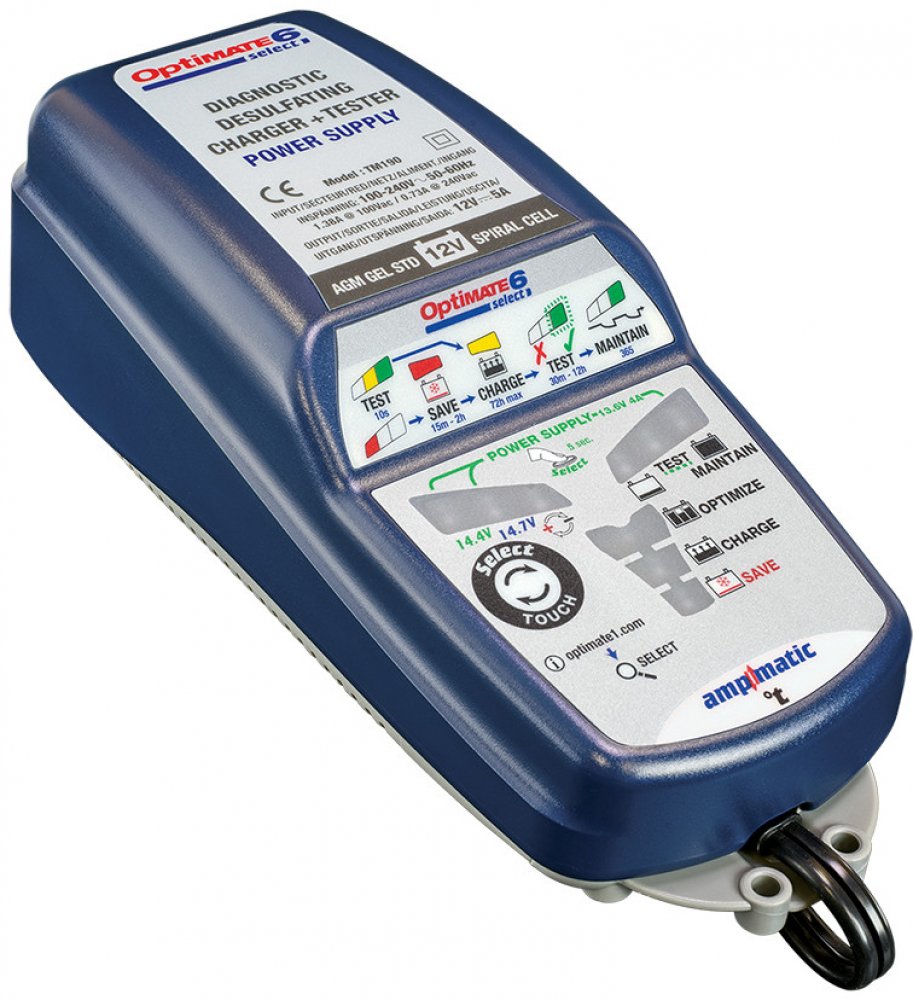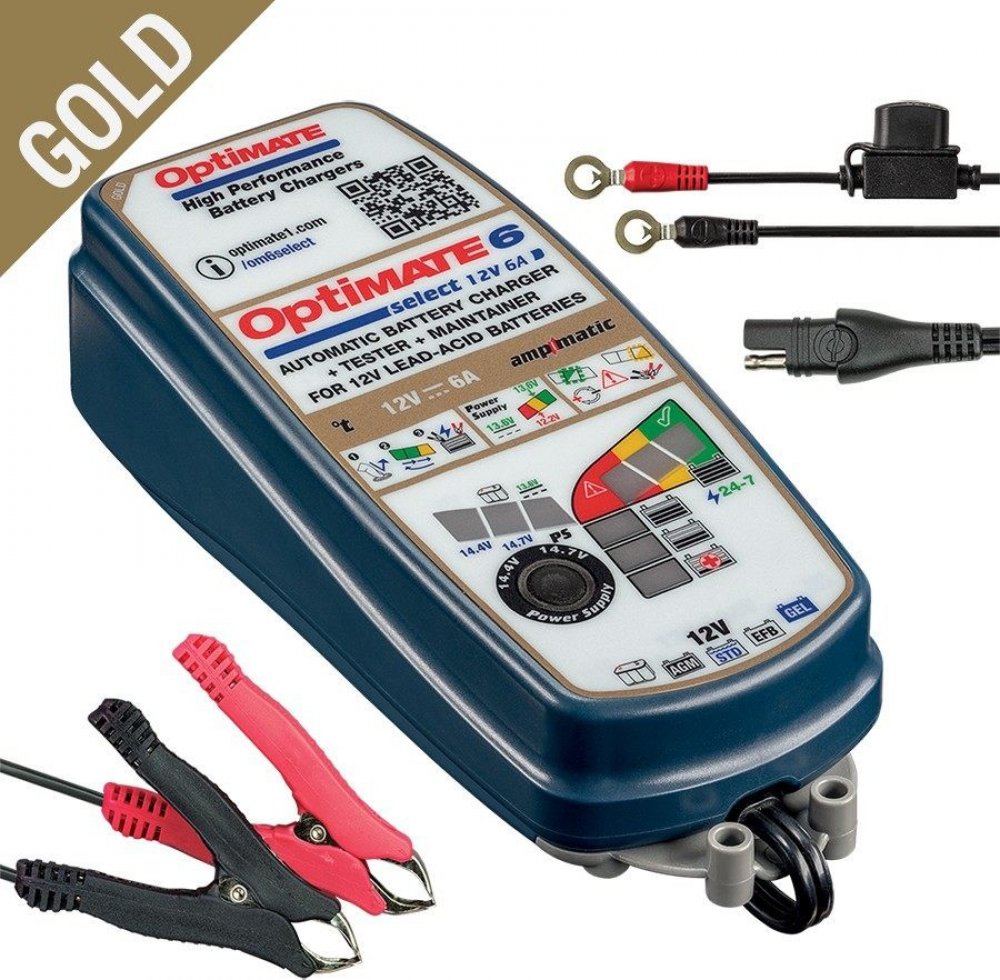 Tato profesionální nabíječka není určena jen pro servisy, ale i pro běžného uživatele, který si potrpí na prvotřídní kvalitu a pohodlí. Optimate 6 Select dokáže nejen baterii nabít, ale i oživit hluboko vybité akumulátory (min. 0,5V pro 12V baterie), otestovat stav baterie a udržovat ji trvale v nabitém stavu. Optimate 6 Select může být trvale připojen k akumulátoru.