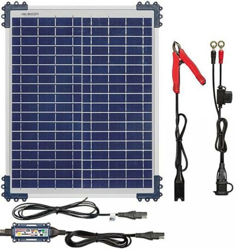 Optimate Solar 20W s dodávaným regulátorem tvoří pulzní nabíječku s výstupním pulzním proudem 3-5A. Maximální výstupní proud dodávaného solárního panelu je 1,66A. Regulátor zpracovává proud z polykrystalického panelu na nabíjecí pulzy pro zajištění co nevyšší efektivity nabíjení připojeného akumulátoru. Když je solární panel neaktivní, regulátor kontroluje a zobrazuje stav připojeného akumulátoru 3 LED diodami. Maximální spotřeba v monitorovacím režimu je 0,5mA - nehrozí tak vybití připojeného akumulátoru. Regulátor dokáže nabíjet akumulátory od napětí 1V, tím může pomoct při záchraně hluboce vybitých baterií (pozn.: u hluboce vybitých akumulátorů může vzniknout nevratná sulfatace). Nabíječka slouží pro nabíjení a udržování akumulátorů v plně nabitém stavu bez rizika poškození akumulátoru při nabíjení. Nevyšších výkonů nabíjení lze dosáhnout umístěním solárního panelu na přímé sluneční světlo.