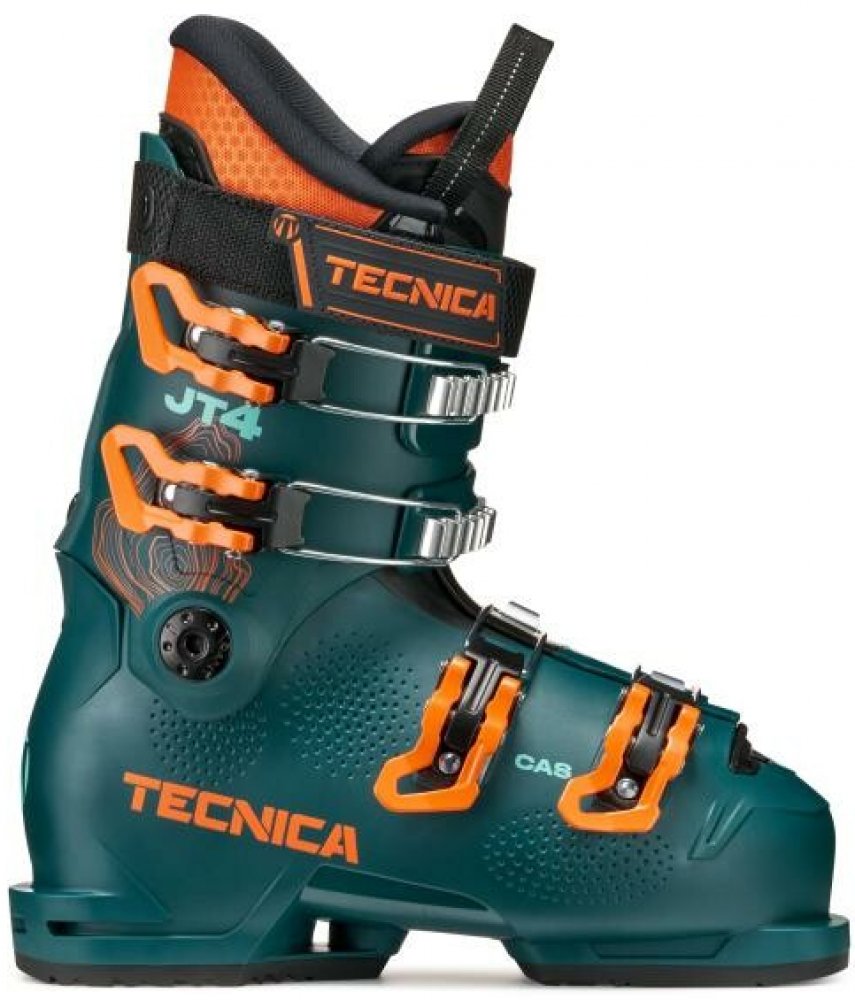 Dětské lyžařské boty Tecnica JT 4 nabízejí teplo, pohodlí a jistotu při prvních obloucích – čtyři přezky zajišťují perfektní oporu a snadné ovládání lyží. | Dětské lyžařské boty Tecnica JT 4 jsou ideální volbou pro začínající a mírně pokročilé mladé lyžaře, kteří potřebují spolehlivou oporu, komfort a jednoduché ovládání.Čtyřpřezkový systém umožňuje pevné a rovnoměrné utažení, díky čemuž bota skvěle drží nohu a zajišťuje efektivní přenos sil na lyže. Měkký flex je tolerantní a odpouští chyby, což pomáhá dětem učit se s jistotou a radostí.Vnitřní botička Junior Liner poskytuje výbornou tepelnou izolaci a komfort i během celodenního lyžování. Konstrukce skeletu je lehká a snadno se nazouvá i vyzouvá, což ocení rodiče i děti.Model v atraktivní tyrkysové barvě zaujme na první pohled a podpoří chuť trávit víc času na svahu.Parametry:Flex: 65Šířka kopyta: 100 mmTyp zapínání: 4 přezkyHmotnost (pár): 2600 g (vel. 235)Určení: dětské, rekreační / all-mountainTecnica JT 4 – lehké, teplé a pohodlné dětské lyžáky, které usnadní první kroky na sněhu a přinesou radost z každé jízdy.