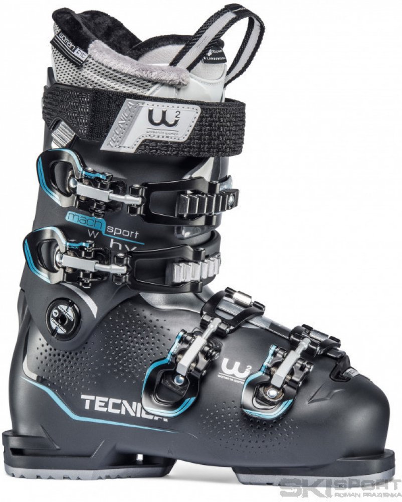 Tecnica Mach Sport HV 75 W jsou měkké dámské sportovní lyžařské boty s šířkou skeletu 103 mm, které nabízejí skvělý komfort s nižší flexí. Boty respektují dámskou anatomii a jsou ideální pro širší nohu na celodenní lyžování. Anatomicky tvarovaná botička se snadno nazouvá a díky měkkému polstrování poskytuje velké pohodlí. Tepelný komfort botičky zvyšuje použití vlákna Celliant, díky kterému se zlepšuje cirkulace, prokrvení a okysličení, mající za následek lepší termoregulaci a rychlejší regeneraci nohy.