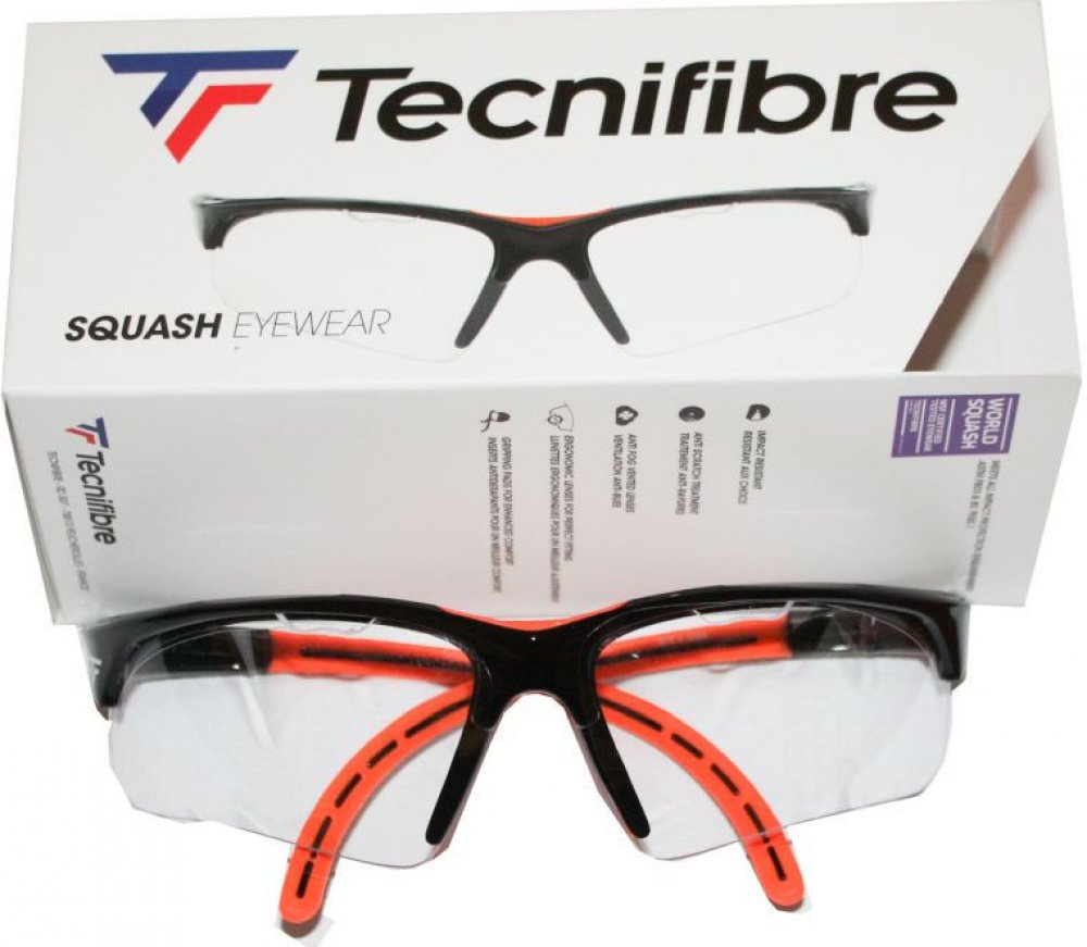Brýle určené pro hraní squashe. Ventilační kryty usnadňují maximalizaci proudění vzduchu a zároveň zabraňují zamlžování. Aplikovaná povrchová úprava umožňuje zvýšit odolnost brýlí proti nárazům a poškrábání. Tecnifibre Lunettes Squash mají měkkou špičku vytvořenou z gumy, která zajišťuje vysokou úroveň ochrany a pohodlí. Součástí balení je obal z mikrovlákna, které může také fungovat jako otírání brýlí, a nastavitelný pásek, který omezuje maximální sklouznutí brýlí.