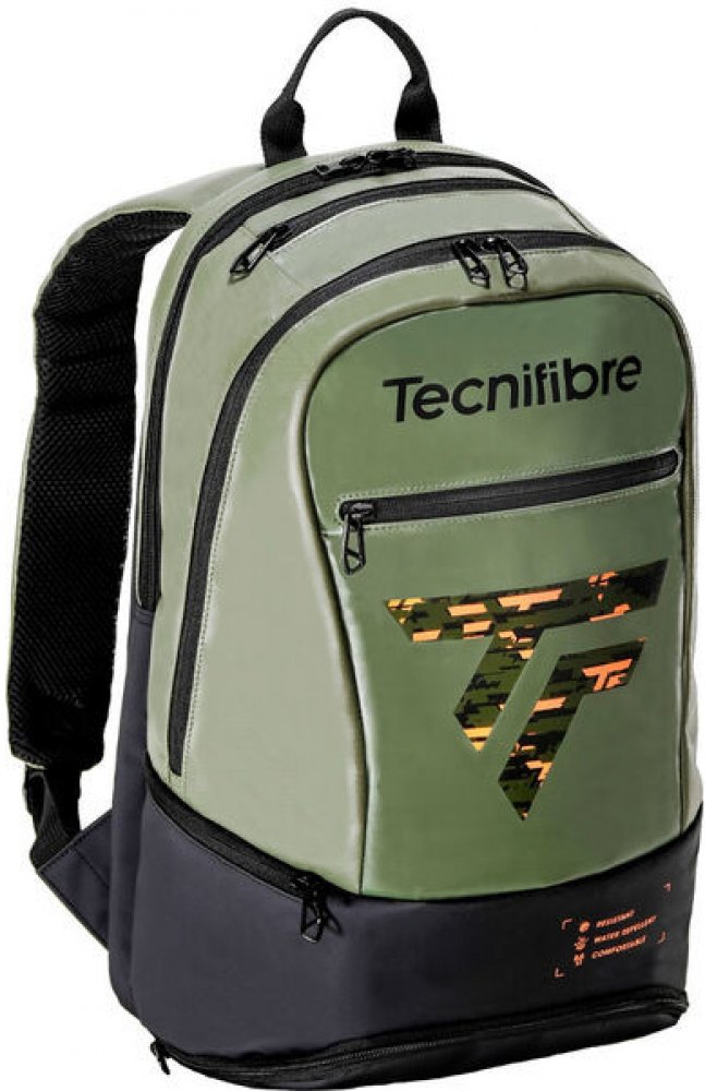 Designově ladí s raketami řady TF-40 – elegantní matný khaki základ s moderní grafikou ve fluorescenčně oranžové a černé dodává batohu sportovní šmrnc a špičkový styl.