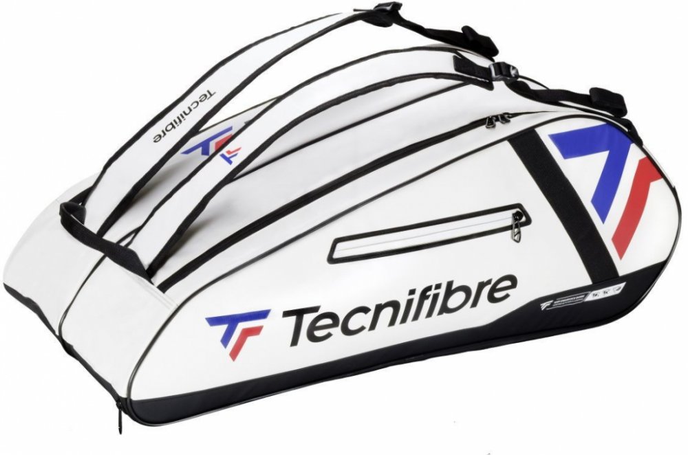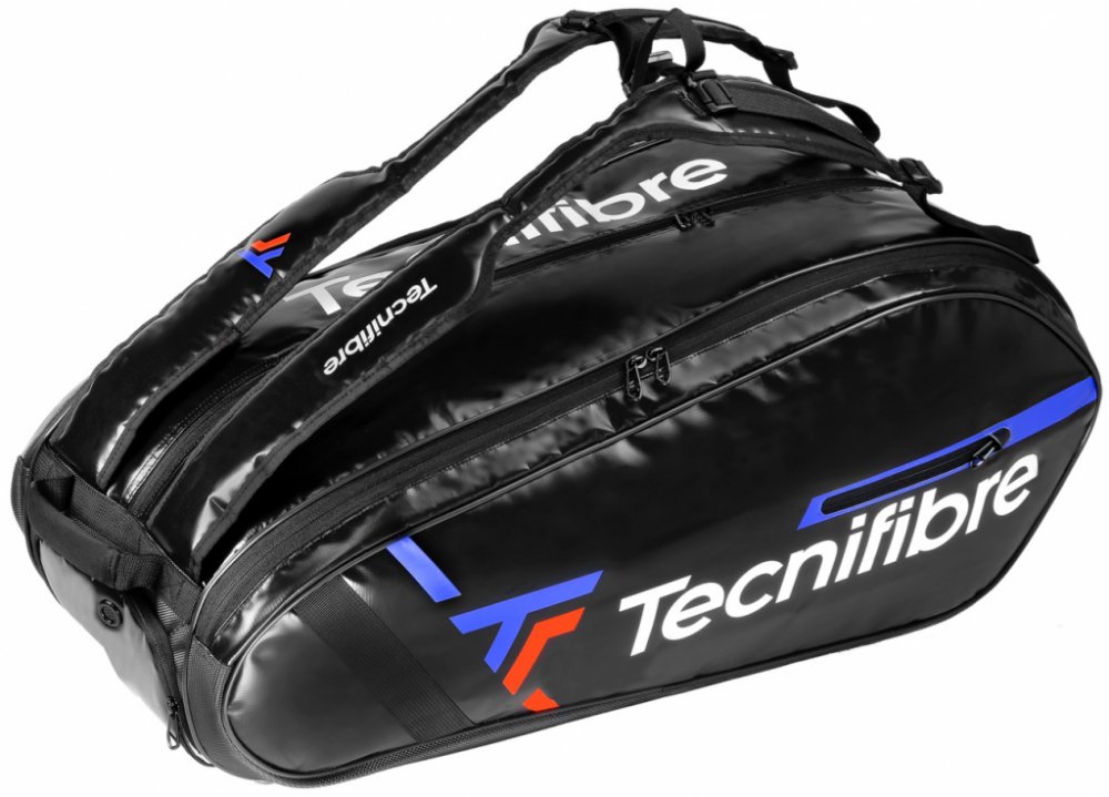 Tenisová taška Tecnifibre Tour Endurance Ultra 12R - černá Elegantní a praktická taška z kolekce TOUR ENDURANCE, navržené ve spolupráci s Daniilem Medveděvem a Igou Świątek. Může pojmout až 12 raket. Má dvě hlavní komory, z nichž jedna je vybavena vnitřní kapsou na příslušenství. Je vyrobena z odolného, snadno čistitelného a voděodolného materiálu. Dva nastavitelné popruhy - ergonomické a pohodlné. Držadlo pro postavení tašky ve svislé poloze. Vysoká kvalita zpracování a použitých materiálů.
