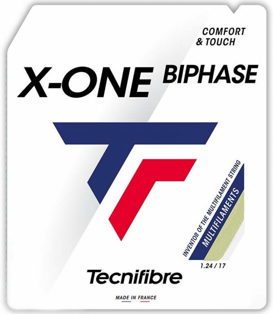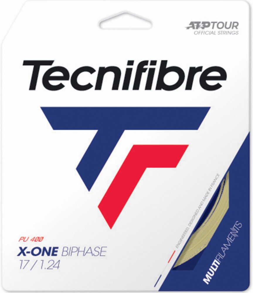 Tenisový výplet Tecnifibre X One Biphase (12 m) Jeden z nejlepších a nejvýkonnějších multifilamentních výpletů z hlediska hratelnosti a trvanlivosti. Vyrobený složitým biotechnologickým procesem (Biphase Process), který díky předběžnému natažení zvyšuje udržení napětí a odolnost. Poskytuje velkou dynamiku úderu a vysoký komfort hry, velmi dobrý pocit míče a nadprůměrnou kontrolu na multifilament. Jeden z nejčastěji používaných výpletů náročnými, pokročilými tenisty, skvěle se osvědčí také jako součást hybridu.
