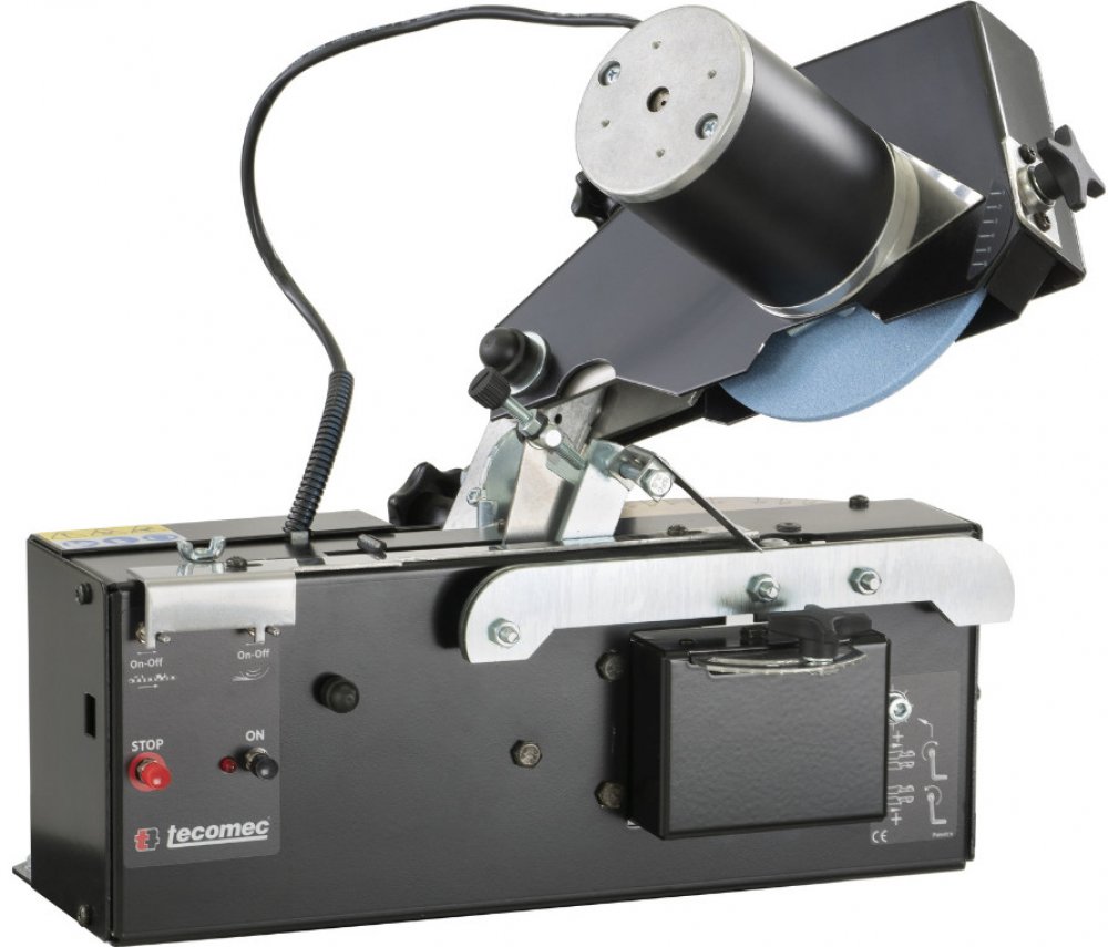 Úhly ostření lze snadno nastavit v rozmezí 0° až 35°, nastavení hloubky je manuální. Pro ostření pravého a levého řezného zubu lze motor otáčet ručně.