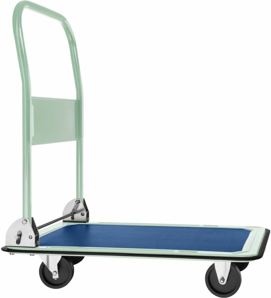 Plošinový vozík ideální pro převážení nákladu do váhy 150 kg. Malý, kompaktní, se sklopným držadlem. Složený plošinový vozík zabere málo místa. Pohodlně ho naložíte do dodávky nebo uskladníte v koutě garáže či dílny.