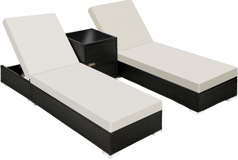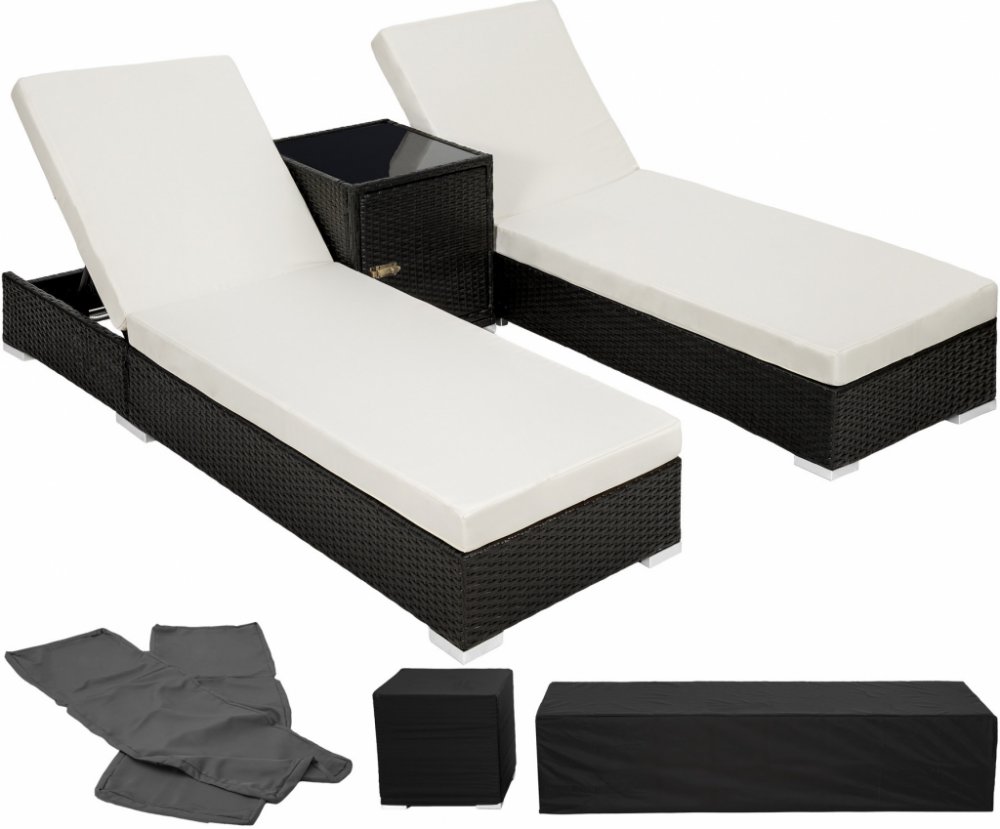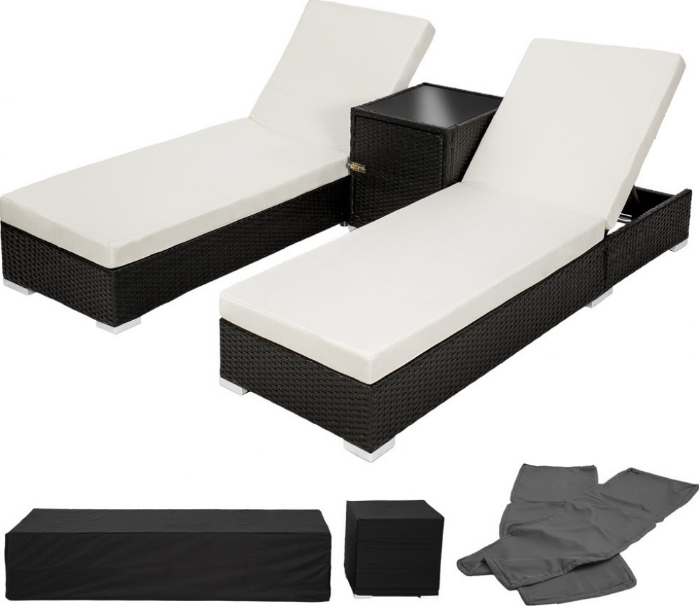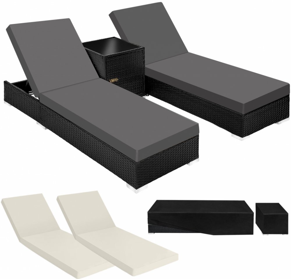 TecTake 401500 2 Ratanová zahradní lehátka hliníková se stolkem vč.