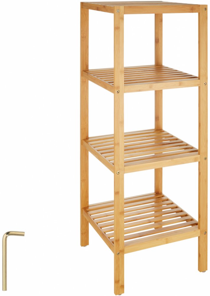 Tato krásná bambusová stojící police se 4 policemi zaujme svým moderním vzhledem i kvalitou. Police je vyrobena z lakovaného bambusového dřeva a díky úložným přihrádkám nabízí dostatek prostoru pro knihy, hračky a mnoho dalších předmětů v každé myslitelné místnosti v domě. Stojící polici lze použít také jako věšák na ručníky v koupelně.Nejdůležitější informaceProtiskluzová základnaVšestranná dřevěná policeRychlá montážRobustní, lakované bambusové dřevoVelmi atraktivní vzhledSnadno se čistíBarva: hnědáTechnické údajeCelkové rozměry (DxŠxV): 33 x 33 x 97 cmVýška polic: 16 - 43 - 70 - 97 cmMateriál: lakované bambusové dřevoHmotnost: 3 kgRozsah dodávky1 stojící police1 návod k montážiDekorativní materiály, nábytek, doplňky atd. zobrazené pro lepší demonstraci nejsou součástí dodávky.PoznámkaU tohoto výrobku nebyla nalezena žádná varování.Pro tento výrobek nebyla nalezena žádná varování.Pro tento výrobek nebyla nalezena žádná varování. Tato krásná knihovna se 4 policemi zaujme svou kvalitou i moderním vzhledem. Regál je vyroben z lakovaného bambusu a nabízí dostatek prostoru pro knihy, hračky a mnoho dalších nezbytností ve všech místnostech domu nebo bytu. Díky své prostorově úsporné konstrukci se velmi dobře hodí do koupelny pro uložení toaletních potřeb, pracích prostředků nebo ručníků.Výhody Všestranné použití Protiskluzové podložky Stabilita Rychlá montáž Vyrobeno z lakovaného bambusuTechnické specifikace Celkové rozměry (DxŠxV): 33 x 33 x 97 cm Výškové úrovně polic: 16 - 43 - 70 - 97 cm Hmotnost: 3 kg Materiál: Materiál: lakovaný bambusObsah balení 1 police 1 návod k montáži