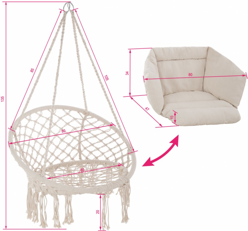 Povzneste se nad problémy a stres všedního dne v elegantním a pohodlném závěsném křesle Grazia od tectake. Super měkký polštář a jemná bavlněná vazba s ozdobnými střapci se dokonale přizpůsobí tvaru vašeho těla. Navzdory své nízké hmotnosti je konstrukce z práškové oceli, polyesteru a bavlny extrémně stabilní a pružná. V nesestaveném stavu lze závěsné křeslo snadno uklidit nebo a pohodlně kamkoliv...
