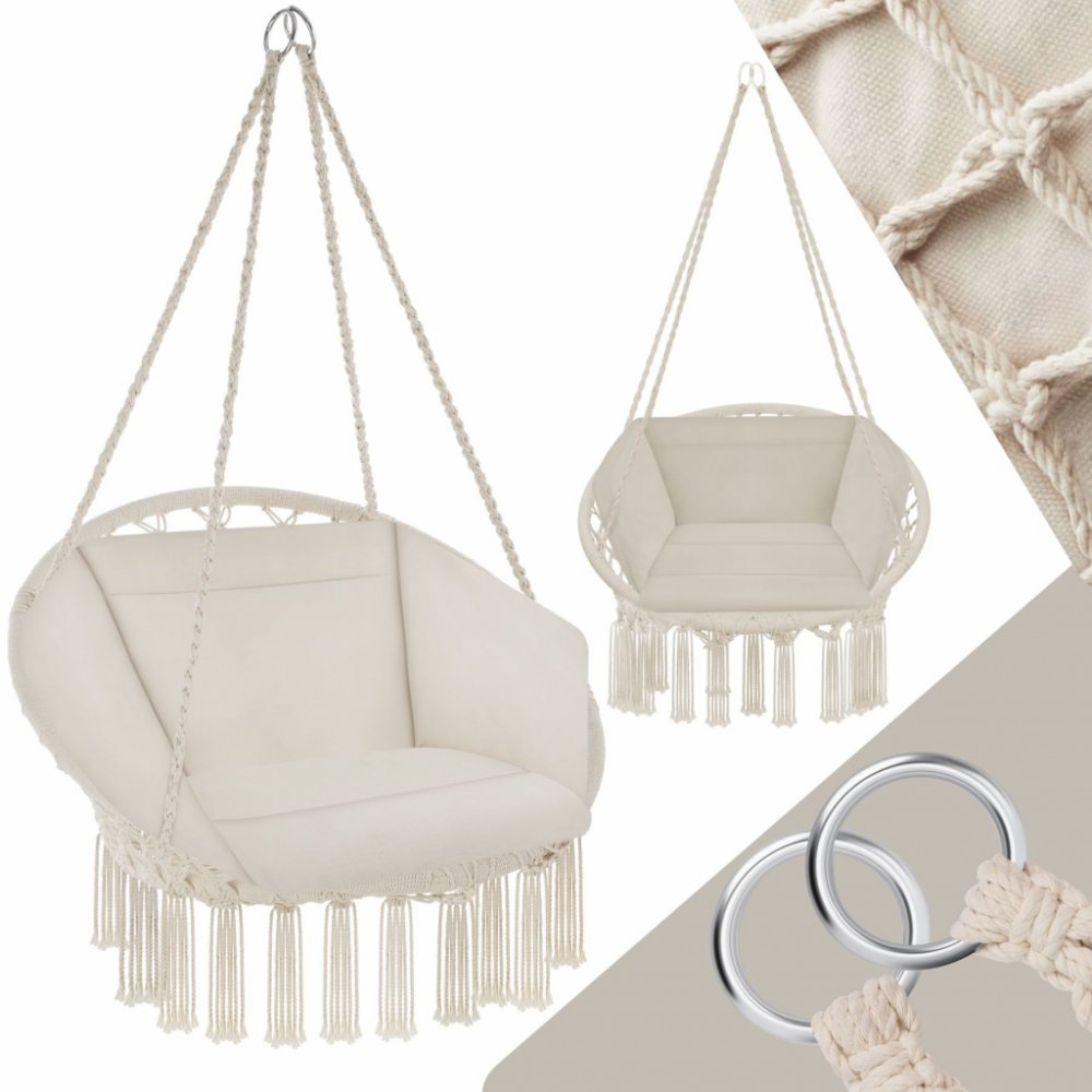 tectake 403205 závěsné křeslo Grazia béžová ocel