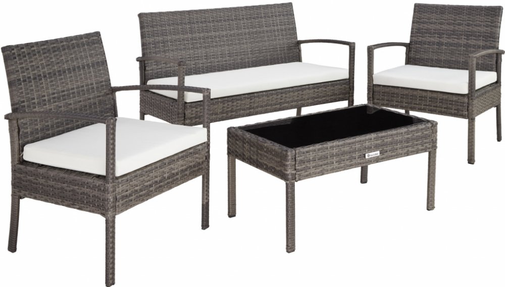 tectake 403398 zahradní ratanový nábytek sparta 3+1 šedá