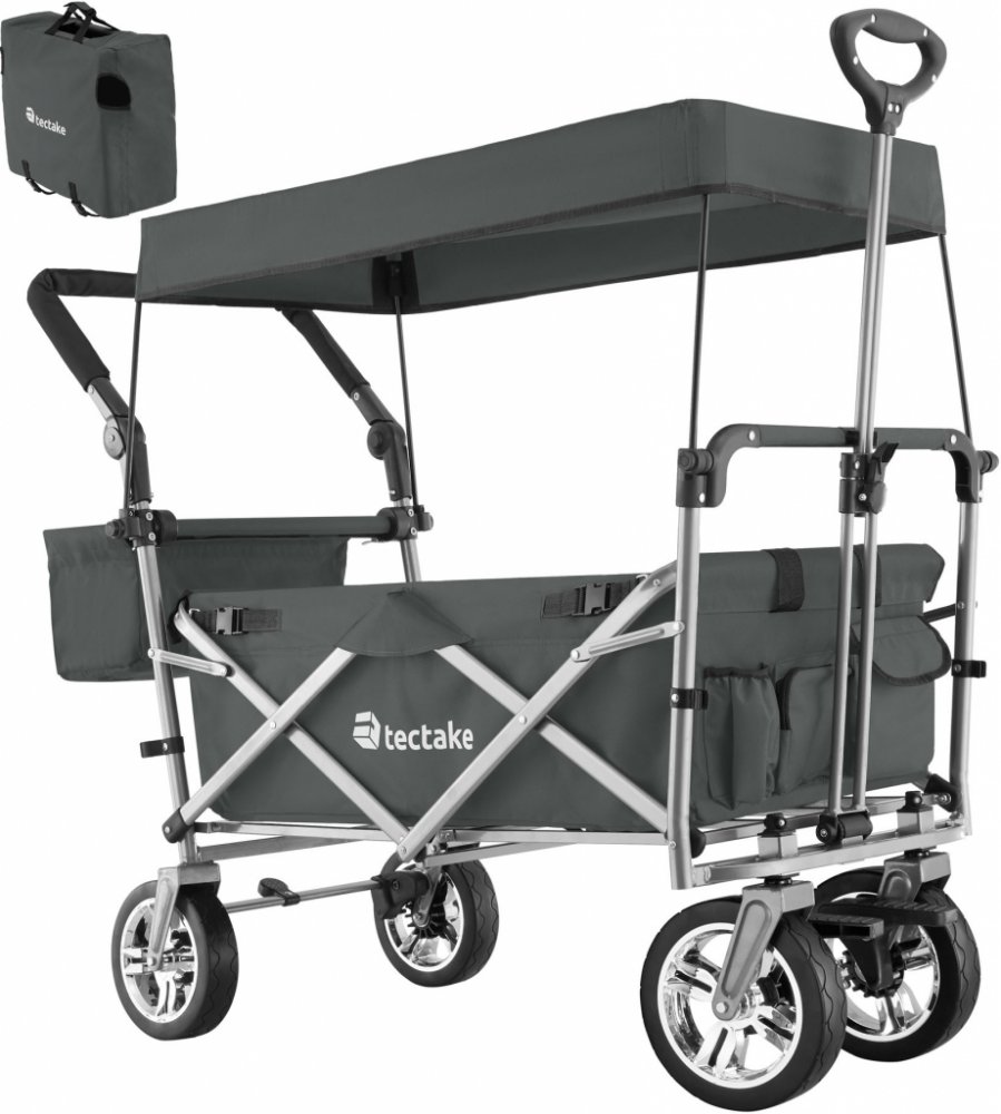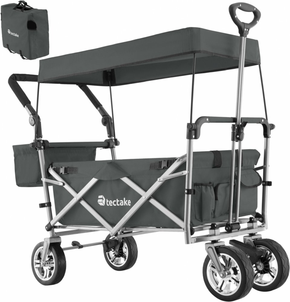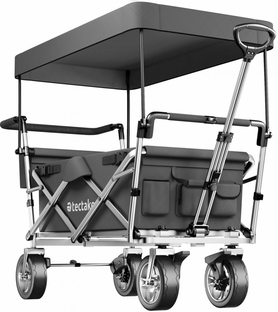 Spousta možností skladování a odnímatelná střecha jsou jen některé z mnoha možností tohoto funkčního vozíku od tectake. Díky důmyslnému skládacímu mechanismu je přepravní vozík okamžitě připraven k použití. Výsuvná oje, nastavitelná rukojeť a plastová kola s hladkým chodem usnadňují řízení a šetří energii. Pevný ocelový rám a odolná polyesterová tkanina zajišťují vysokou odolnost, proti vodě a neč...