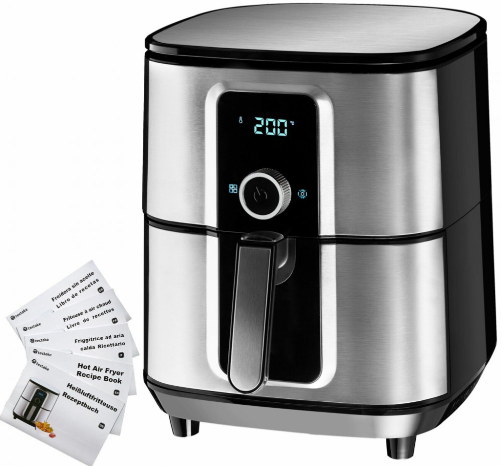 Vychutnejte si křupavou slaninu k snídani, šťavnatou pečeni k obědu a chutnou zeleninu k večeři s univerzální horkovzdušnou fritézou Ben od společnosti tectake. Vaše gurmánská cesta může začít několika pohyby ruky na dotykovém displeji a otočném knoflíku. Díky rovnoměrnému ohřevu zůstanou hranolky křupavé a kuřecí paličky křehké a zároveň si zachovají vlhkost a nutriční hodnoty - přebytečný olej se shromažďuje odděleně od fritovacího koše ve spodní části zásuvky. Dvě vyjímatelné části fritézy se snadnou údržbou lze po použití snadno umýt nebo pohodlně vložit do myčky - jezte rozmanitější pokrmy s výkonnou horkovzdušnou fritézou Ben od společnosti tectake.Výhody Výkonná fritéza s osmi přednastavenými programy Tepelně odolný kryt s dotykovým displejem a otočným knoflíkem Ideální pro smažení, grilování, opékání, pečení, rozmrazování, ohřívání a udržování jídla v teple Až o 70 % nižší spotřeba oleje Rychlý ohřev díky vysokorychlostní cirkulaci vzduchu Vyjímatelná zásuvka s nepřilnavým fritovacím košem Tlačítko s bezpečnostním krytem proti nechtěnému odemknutí koše Čtyři protiskluzové gumové nožičky pro bezpečné postavení Automatické vypnutí po ukončení programu Snadné čištění Včetně brožury s recepty na 29 pokrmů < SGS I číslo osvědčení GS/21/HEL/02011 Technické specifikaceCelkové rozměry (šxhxv): cca 31 x 42,5 x 37 cmObjem varného prostoru: 10,2 lVnitřní rozměry fritovacího koše (šxhxv): cca 21 x 22 x 12,5 cmRukojeť (d x š): cca 13 x 3,5 cmOvládání časovače: 0 - 60 minRegulace teploty: 80 - 200 °CPříkon: 1800 WNapětí: 220-240 VFrekvence: 50Hz/60HzDélka kabelu: cca 120 cmHmotnost: cca 6,3 kgMateriál: Polypropylen a nerezová ocel (tělo), ocel s hliníkovým povrchem a nepřilnavým povrchem (koš); polyamid (rukojeť), polykarbonát (displej)Obsah balení Tepelná fritéza Zásuvka s fritovacím košem Kniha receptů Návod k použití