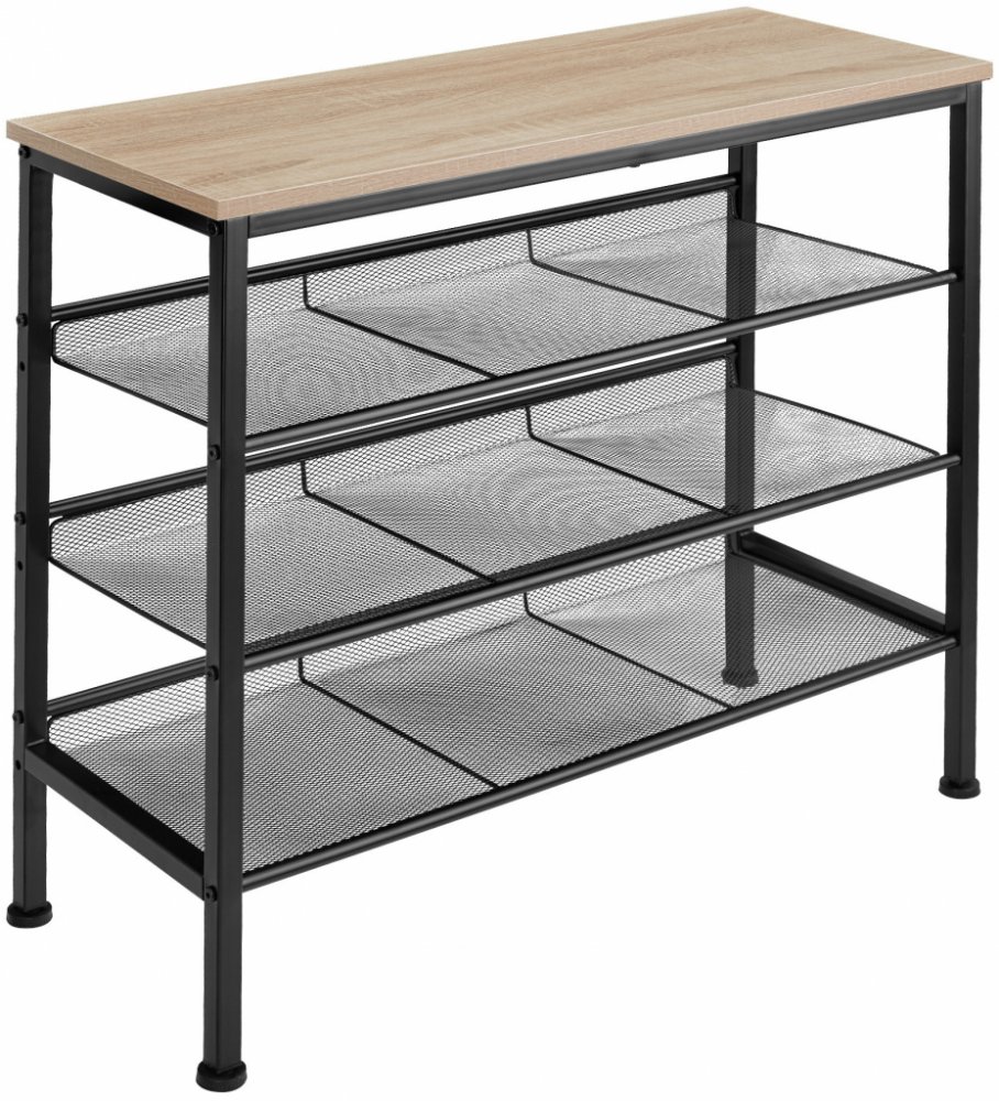 Díky přehlednému botníku Wolverhampton od tectake jsou tenisky, pantofle, sandály a další vždy uspořádané a připravené po ruce. Tři mřížky lze namontovat naplocho nebo pod úhlem a nabízejí spoustu úložného prostoru. Pevný ocelový rám a výškově nastavitelné plastové nožičky zaručují velkou odolnost a vysokou stabilitu. Po vizuální stránce zaujme botník harmonickou kombinací dřeva a oceli, která dod...