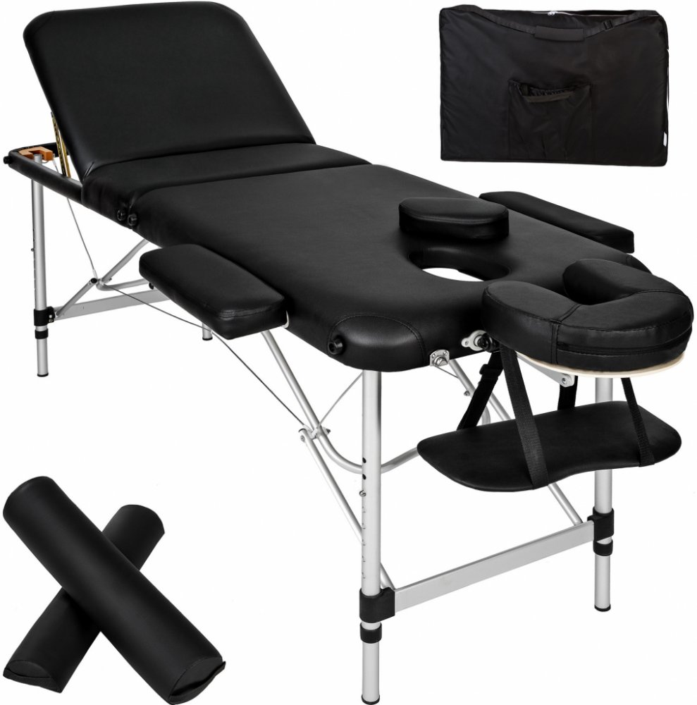 tectake 404634 skládací masážní lehátko s taškou a kolečky - 3 zóny - černá