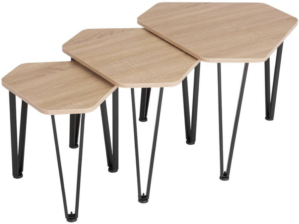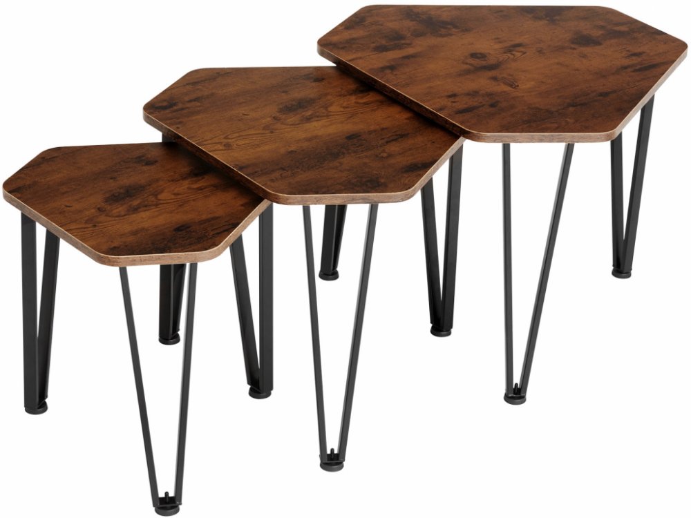 Udělejte si doma moderní koutek v osobitém industriálním stylu s třídílnou sadou odkládacích stolků Torquay od tectake. Elegantní směs materiálů chladné oceli a teplého dřeva tvoří vzrušující kontrast, který v každé místnosti vykouzlí příjemnou atmosféru.