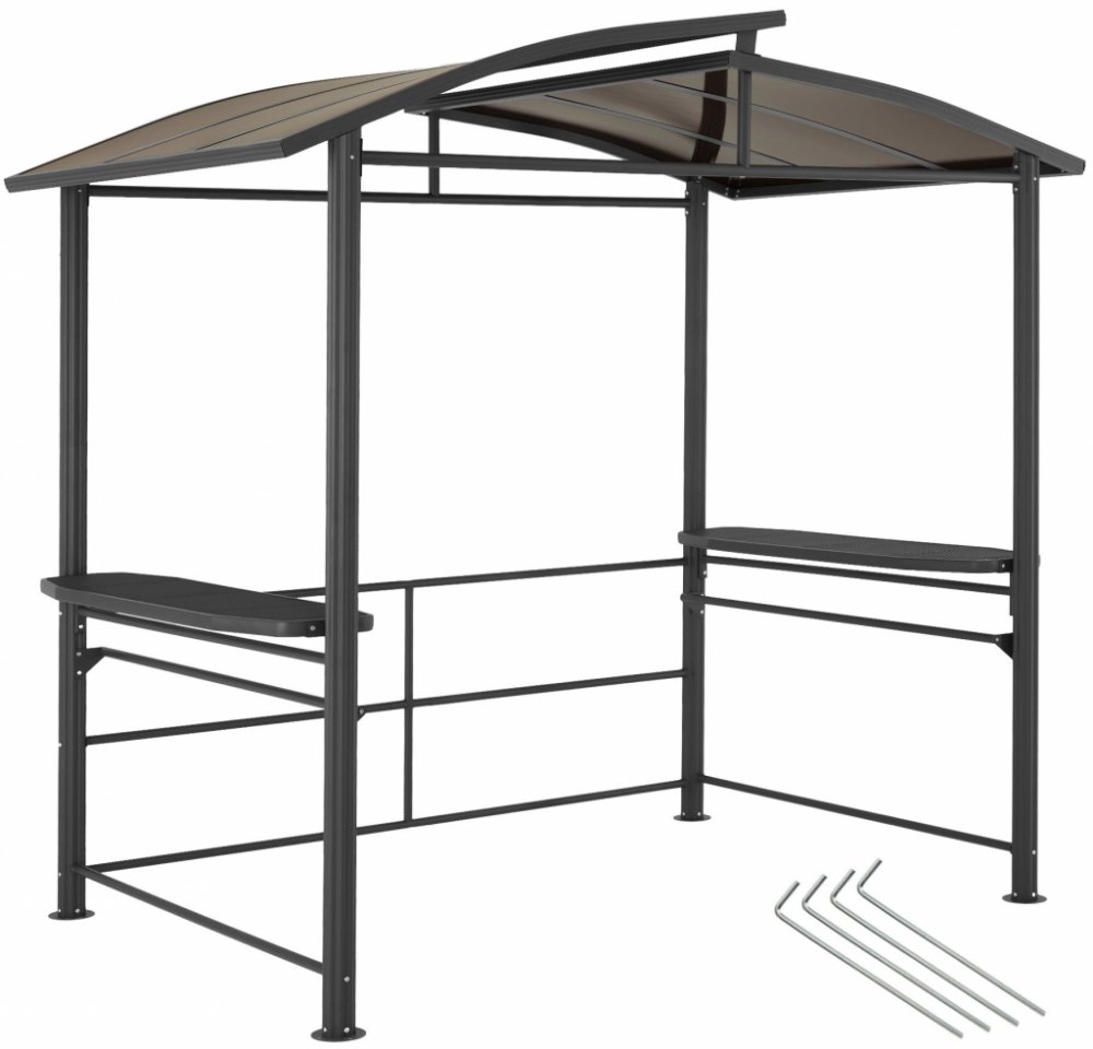 Začněte novou grilovací sezónu perfektně s vkusným grilovacím altánem od tectake. Pozoruhodností otevřené konstrukce je stupňovitá střecha, která chrání před deštěm a sluncem a zajišťuje dobrý odvod kouře. Potraviny, omáčky a další náčiní lze pohodlně uložit na boční mřížkové police, zatímco závěsné tyče pod nimi jsou ideální pro ručníky, kleště, špachtle atd. Pro pevnou konstrukci jsou charakteri...