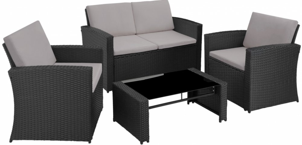 Útulnost je u tohoto útulného ratanového lounge od společnosti tectake na prvním místě. Nadýchané polštáře vybízejí ke snění. Robustní ocelový rám základny zajišťuje, že je tato odolná souprava vysoce odolná. Jemný proutěný vzor dodává zahradní soupravě elegantní a přitom nenápadný vzhled. Odpočívejte stylově, na zahradě nebo na terase: útulný ratanový sedací nábytek od společnosti tectake.Nejdůležitější informaceAtraktivní design a lákavý vzhledPohodlné, odnímatelné sedáky a opěrné polštářeStůl s odnímatelnou skleněnou deskouRobustní ocelový rámŠrouby z nerezové oceliSnadné čištěníSnadná montážBarva: černá/šedáTechnické údajeKřesloCelkové rozměry (ŠxHxV): cca 68 x 72 x 76 cmSedák (šxh): cca 56 x 58 cmVýška sedáku: cca 38,5 cmOpěradlo (šxv): cca 56 x 39,5 cmVýška područky: cca 61,5 cmRozměry sedáku (šxhxv): cca 54 x 57 x 5 cmRozměry opěrného polštáře (šxhxv): cca 57 x 7 x 38 cmNosnost: 120 kgHmotnost (s polštářem): cca 10 kgPohovkaCelkové rozměry (šxhxv): cca 123,5 x 72 x 76 cmSedák: (šxhxv): cca 110 x 58 cmVýška sedáku: cca 38,5 cmOpěradlo (šxv): cca 110 x 39,5 cmVýška područky: cca 61,5 cmRozměry sedáku (šxhxv): cca 54 x 57 x 5 cmRozměry opěrného polštáře (šxhxv): cca 57 x 7 x 38 cmNosnost: 250 kgHmotnost (s polštářem): cca 14,1 kgStůlCelkové rozměry (dxšxv): cca 90 x 50,5 x 36 cmRozměry skleněné desky (dxšxv): cca 78 x 50 x 0,5 cmNosnost: 30 kgHmotnost (se skleněnou deskou): 30 kg: (cca 9,3 kg)Materiál: práškově lakovaná ocel, polyethylen, 100 % polyesterRozsah dodávky2 křesla s polštáři1 pohovka s polštáři1 stůl se skleněnou deskouMontážní materiálNávod k montážiUpozorněníZBOŽÍ V DEMONTU | SADAOCELOVÝ / ŽELEZNÝ rám podstavce - natřený proti korozi!Abyste se mohli z našeho výrobku těšit co nejdéle při používání venku, doporučujeme použít ochranný kryt, který chrání před únavou materiálu a změnou barvy.DEMONTOVANÉ ZBOŽÍ | SADAZákladní rám z OCELI / ŽELEZA - natřený proti korozi!Abyste si mohli náš výrobek užívat co nejdéle při používání venku, doporučujeme používat ochranný kryt, který chrání před únavou materiálu a změnou barvy.Naše ratanové proutí je vyráběno ručně, což každému kusu dodává jedinečný charakter. Vzhledem k této individuální výrobě se mohou vyskytnout drobné odchylky v barvě a vzoru.ROZEBRANÉ ZBOŽÍ | SADAOCELOVÝ / ŽELEZNÝ základní rám - natřený proti korozi!Abyste si náš výrobek mohli při používání venku užívat co nejdéle, doporučujeme používat ochranný kryt, který chrání před únavou materiálu a změnou barvy.