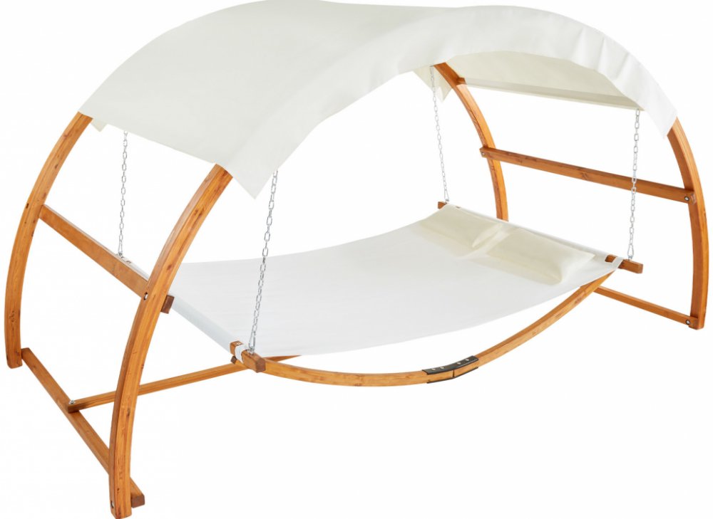Lehátko přesvědčí i v oblasti bezpečnosti – pevné zavěšení je realizováno pomocí pozinkovaných ocelových řetězů a háků, které spolehlivě upevňují houpací síť na dřevěné konstrukci. Tak se můžete pohodlně opřít a bezstarostně relaxovat. Vybavena velkou sluneční střechou poskytuje houpačka efektivní ochranu a vytváří příjemný stín pro relaxační odpočinek.