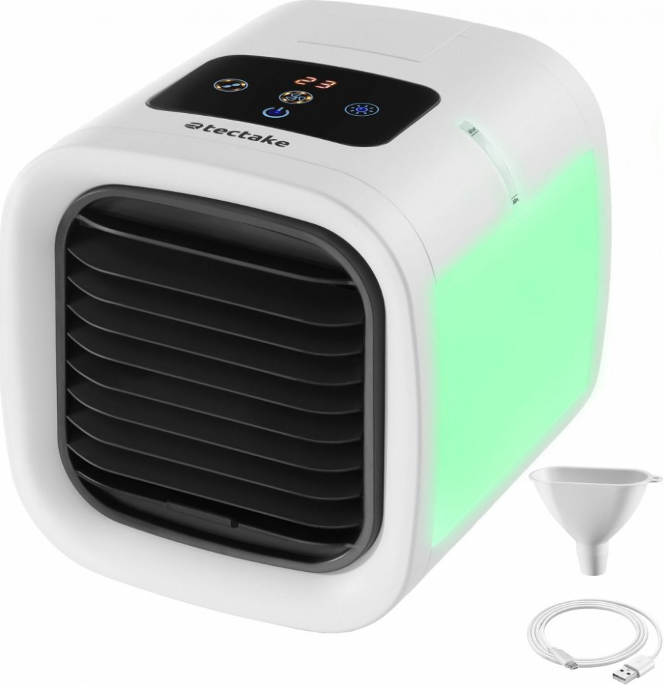 Pohoda na cestáchObjevte výkonný ochlazovač vzduchu Frosty od společnosti tectake a vneste do každé místnosti závan čerstvého vzduchu. Díky zdařilé kombinaci praktického designu a všestranné funkčnosti se tento spotřebič postará o příjemné teploty - ať už doma, nebo na cestách.Maximální flexibilitaAť už jde o jemný vánek nebo čisté chlazení - rotující žebra, pět nastavitelných rychlostí a dva stupně chlazení umožňují individuální a cílený přívod vzduchu podle potřeby. LED panel na boční straně vytváří díky sedmi volitelným barvám mimořádně příjemnou a lákavou atmosféru.Snadná manipulacePro vysoký uživatelský komfort lze všechny funkce pohodlně ovládat prostřednictvím intuitivního dotykového ovládacího panelu. Naplnění nádržky na vodu je rovněž velmi snadné díky malému ovládacímu okénku a dodávané nálevce. Praktický LED kabel navíc umožňuje rychlé nabíjení přes notebook, automobil nebo elektrickou zásuvku - pro optimální klima kdykoli a kdekoli.Dopřejte horkým letním dnům chladivé vylepšení s účinným ochlazovačem vzduchu Frosty od společnosti tectake.Nejdůležitější informaceVýkonný ochlazovač vzduchu s příjemným objemem5 rychlostí a 2 úrovně chlazeníBoční LED panel s 8 volitelnými barvamiIntegrovaná nádržka na vodu a vyměnitelný filtrIntuitivní dotykový ovládací panel pro snadné použitíNastavitelná žebra pro přizpůsobení chlazeníUSB kabel a nálevka v baleníBarva: bíláTechnické údajeCelkové rozměry (ŠxHxV): cca 16,5 x 17 x 18 cmPřední mřížka (šxv): cca 12,5 x 13,5 cmLED panel (šxv): cca 13,5 x 10 cmKryt nádržky na vodu (šxv): cca 5 x 5 cmDotykový ovládací panel (šxv): cca 9,3 x 6,3 cmNálevka (šxhxv): cca 5 x 2,5 x 4,5 cmDélka kabelu USB: cca 145 cmVýkon: 8 WObjem nádržky na vodu: cca 250 mlHmotnost: přibližně 0,9 kgMateriál: plast ABS, měď, ocel, polypropylen, polyvinylchloridRozsah dodávkyChladič vzduchuUSB kabelNálevkaNávod k obsluzeVezměte prosím na vědomíOdkaz na ElektroGInformace o elektrických a elektronických (starých) spotřebičíchNásledující informace jsou určeny domácnostem, které používají elektrické a/nebo elektronické spotřebiče. Dodržujte prosím tyto důležité pokyny v zájmu likvidace starých spotřebičů a vlastní bezpečnosti.1. Informace o likvidaci (starých) elektrických a elektronických zařízení a význam symbolu v příloze 3 ElektroGMajitelé starých spotřebičů je musí likvidovat odděleně od netříděného komunálního odpadu. Odpadní elektrická a elektronická zařízení se proto nesmí likvidovat jako netříděný komunální odpad a zejména nepatří do domovního odpadu. Namísto toho musí být tyto staré spotřebiče sbírány odděleně a likvidovány například prostřednictvím místních systémů sběru a zpětného odběru.Majitelé starých spotřebičů musí před odevzdáním na sběrném místě oddělit také staré baterie a akumulátory, které nejsou součástí starého spotřebiče, a také zářivky, které lze ze starého spotřebiče vyjmout, aniž by došlo k jejich zničení. To neplatí, pokud jsou OEEZ oddělena od ostatních OEEZ v souladu s § 14 odst. 4 věta 4 nebo odst. 5 věta 2 a 3 ElektroG v rámci procesu volby orgánů veřejné správy odpadů za účelem přípravy k opětovnému použití.Symbol v příloze 3 ElektroG umožňuje majitelům rozpoznat staré spotřebiče, které mají být po skončení životnosti sbírány odděleně od netříděného komunálního odpadu. Symbol pro oddělený sběr elektrických a elektronických zařízení představuje přeškrtnutý kontejner na kolečkách a je navržen následovně:2. Informace o možnostech zpětného odběru starých spotřebičůMajitelé starých spotřebičů je mohou odevzdat v zařízeních zřízených a dostupných orgány veřejné správy pro nakládání s odpady pro zpětný odběr nebo sběr starých spotřebičů a zajistit tak jejich řádnou likvidaci. Tam je také možné odevzdat elektrická a elektronická zařízení za účelem jejich opětovného použití. Více informací o tom získáte v příslušném sběrném středisku nebo středisku zpětného odběru.Online seznam sběrných středisek a středisek zpětného odběru naleznete zde:ear-verzeichnis/sammel-und-ruecknahmestellen3. Poznámka k ochraně údajůNěkterá stará zařízení určená k likvidaci obsahují citlivé osobní údaje (např. v počítači nebo chytrém telefonu), které se nesmí dostat do rukou třetích osob. Výslovně upozorňujeme, že za odstranění osobních údajů ze starých zařízení určených k likvidaci odpovídají jejich koncoví uživatelé.4. Poznámka k našemu registračnímu číslu WEEEJsme registrováni v registru Stiftung Elektro-Altgeräte, Nordostpark 72, 90411 Norimberk, Německo, jako výrobce elektrických a/nebo elektronických zařízení pod následujícím registračním číslem (WEEE Reg. No. DE): DE 59131102.Odkaz na ElektroGInformace o (starých) elektrických a elektronických zařízeníchNásledující informace jsou určeny domácnostem, které používají elektrická a/nebo elektronická zařízení. Dodržujte prosím tyto důležité pokyny v zájmu likvidace starých spotřebičů a vlastní bezpečnosti.1. Informace o likvidaci (starých) elektrických a elektronických zařízení a význam symbolu v příloze 3 ElektroGMajitelé starých spotřebičů je musí likvidovat odděleně od netříděného komunálního odpadu. Odpadní elektrická a elektronická zařízení se proto nesmí likvidovat jako netříděný komunální odpad a zejména nepatří do domovního odpadu. Namísto toho musí být tyto staré spotřebiče sbírány odděleně a likvidovány například prostřednictvím místních systémů sběru a zpětného odběru.Majitelé starých spotřebičů mu