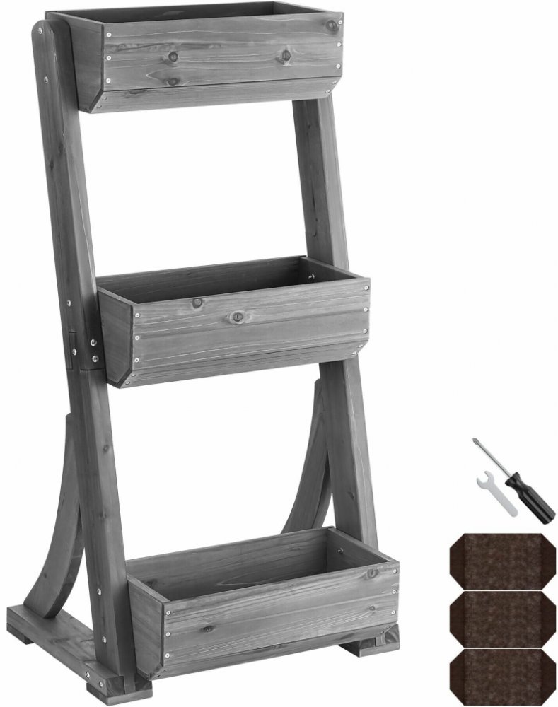 tectake 406175 vertikální záhon flora, lakované dřevo, šedá 60 x 49 x 140 cm