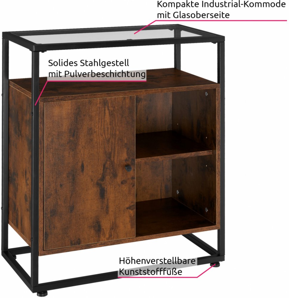 Trápí vás doma nedostatek úložného prostoru? Pro uschování oblečení, ručníků, hraček či jiných drobných předmětů se vám bude hodit komoda tectake. Industriální styl této komody najde své místo v každém interiéru. Komoda tectake se otevírá pomocí klasických dvířek. V dolní části jsou umístěny nožičky, které zajišťují komodě skvělou stabilitu. Umožní vám také pohodlný úklid podlahy a dobrou cirkulac...