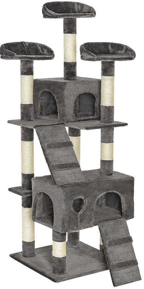 TecTake 60 x 60 x 170 cm 170 cm šedá škrabadla dřevotřísková / plyšová / sisalová Tectake stromy 17 kg pro malé kočky pro dvě kočky se středně velkým půdorysem 3 2