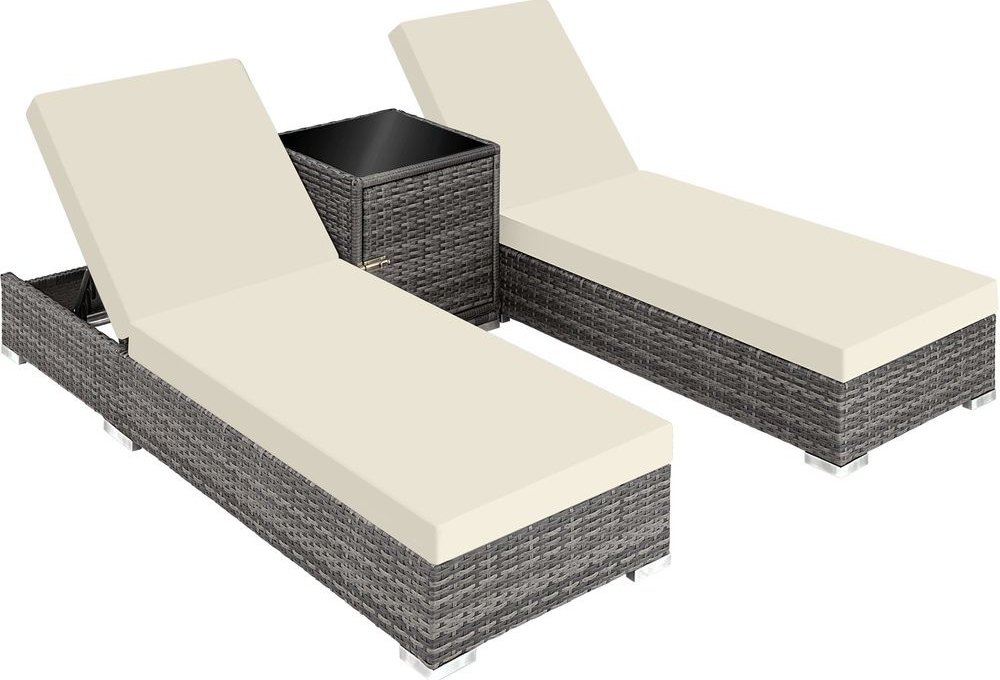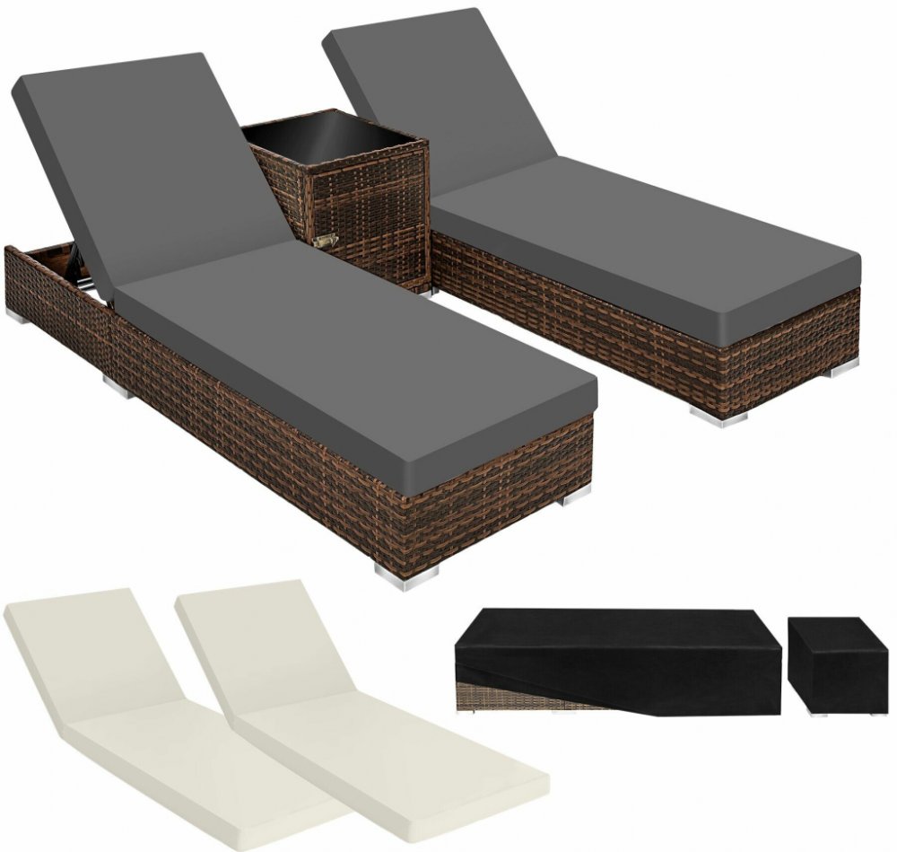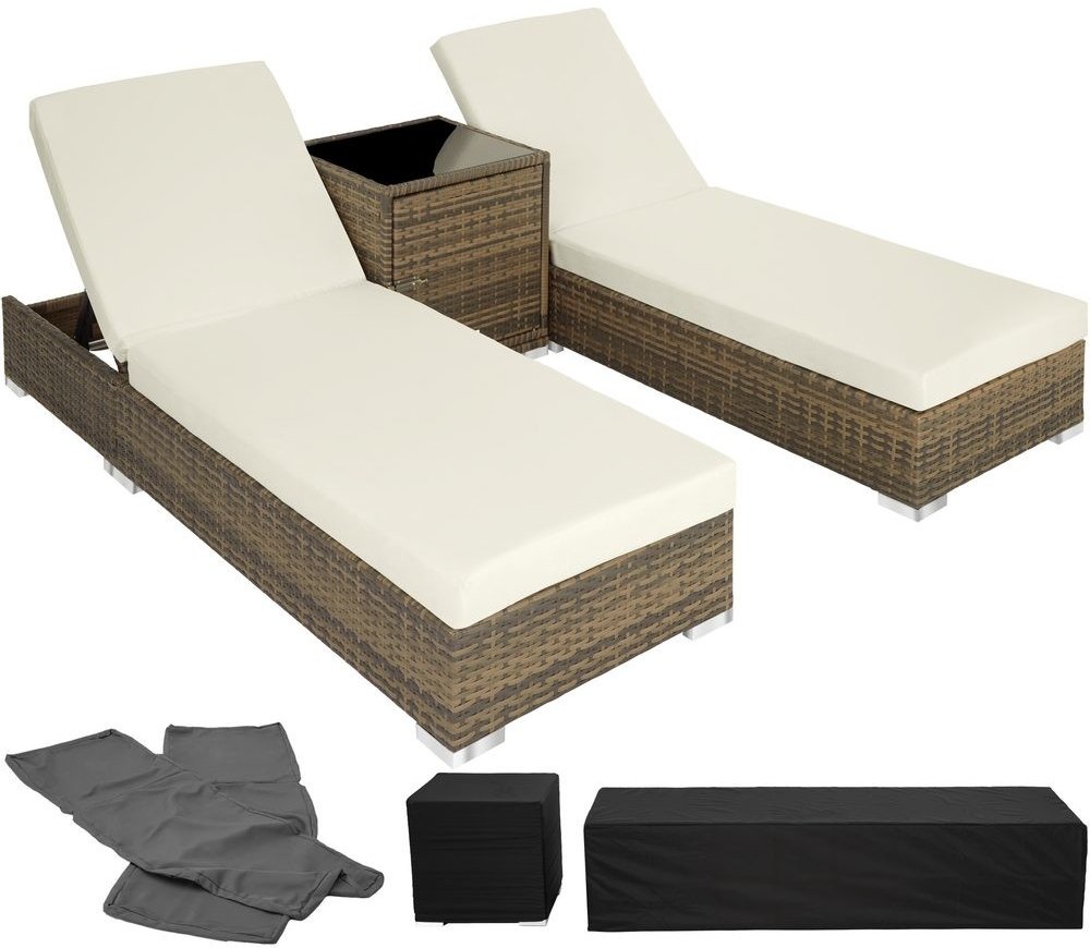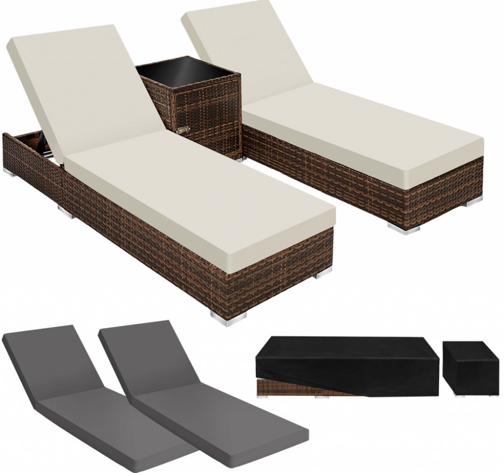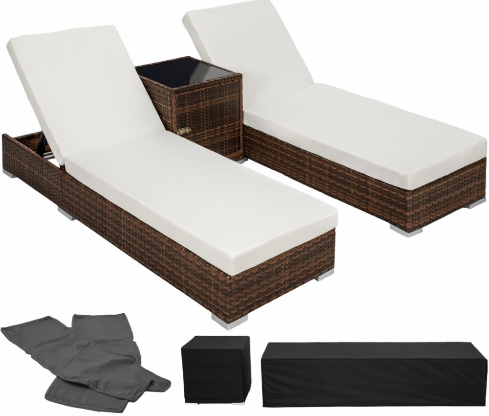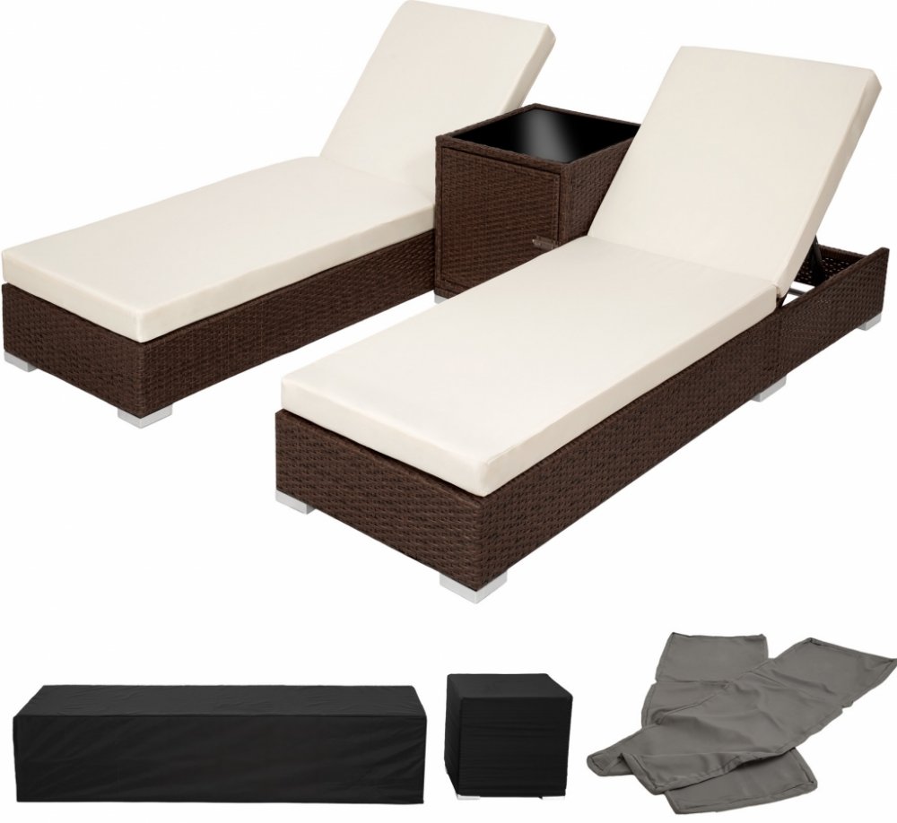 TECTAKE Ratanové zahradní lehátko hliníkové 2x s kostkovým stolkem černá