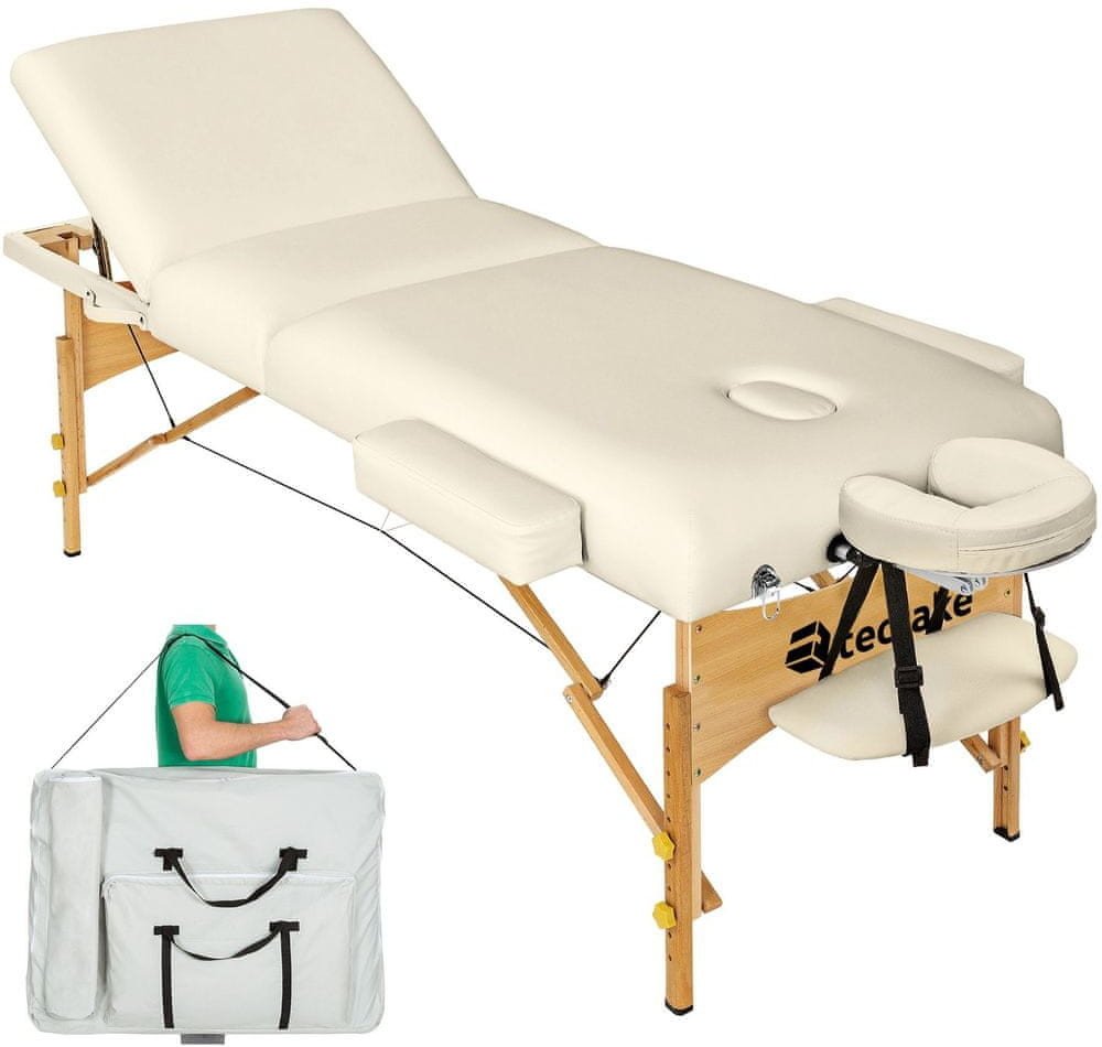 Zažijte bezkonkurenční relaxaci a pohodlí s masážním stolem Somwang. Tento vysoce kvalitní masážní stůl byl vyvinut tak, aby splňoval nejvyšší nároky, a nabízí vám prvotřídní masážní zážitek. Díky silnému polstrování a robustnímu dřevěnému rámu je ideální volbou pro každého, kdo hledá funkční a pohodlný masážní stůl.Masážní stůl s extra silným polstrovánímMasážní stůl má 7,5 cm silné polstrování, které zajišťuje výjimečné pohodlí. Ať už se jedná o soukromé chvíle relaxace nebo profesionální ošetření, silné polstrování zajistí, že se vy i vaši klienti budete cítit naprosto v pohodlí.Skládací a výškově nastavitelný - ideální na cestySkládací masážní stůl je praktický zejména pro terapeuty, kteří pracují na cestách. Díky funkci skládání a výškovému nastavení lze mobilní masážní stůl snadno přenášet a přizpůsobit jej různým pracovním výškám. Přepravu ještě více usnadňuje přepravní taška, která je součástí dodávky.Robustní konstrukce s dřevěným rámemRobustní dřevěný rám masážního stolu zaručuje vysokou stabilitu a odolnost. Stůl snese zatížení až 250 kg, a poskytuje tak bezpečnou a spolehlivou základnu pro jakékoliv masáže.Nastavitelné police pro hlavu a ramenaPro ještě větší pohodlí je masážní stůl vybaven nastavitelnými policemi pro hlavu a paže. Ty lze individuálně nastavit tak, aby každý uživatel měl optimální polohu vleže. Další pohodlí a flexibilitu zajišťuje přidržovací zařízení pro opěrku hlavy na boku.All inclusive - příslušenství v ceněVše, co vidíte na obrázku, je zahrnuto v ceně. Masážní stůl je dodáván s veškerým příslušenstvím, které potřebujete pro profesionální masáž. Od tašky na přenášení až po opěrku hlavy - vše je součástí balení, abyste si usnadnili každodenní práci a potěšili své zákazníky.Vyzkoušejte dokonalou kombinaci funkčnosti a pohodlí s masážním stolem Somwang. Pořiďte si tento vysoce kvalitní masážní stůl a nabídněte sobě i svým zákazníkům prvotřídní masážní zážitek. Díky robustní konstrukci, silnému polstrování a bohatému příslušenství je ideální volbou pro každého, kdo si cení kvality a pohodlí.Hlavní výhodyPlně přizpůsobitelný masážní stůlMěkké polstrování pro optimální pohodlí při leženíPřídržné zařízení pro opěrku hlavy na bokuPružné stránkyBarva: béžováTechnické detailyPolstrování: cca 7,5 cmDélka 191 cm bez opěrky hlavy, s opěrkou hlavy cca 218 cmŠířka lehátka bez područek 70 cm - s područkami až 102 cmPracovní výška od 65 do 90 cm - nastavitelná po 3 cmHmotnost lehátka 17,9 kgNosnost až 250 kgRozměry lehátka ve složeném stavu (d/š/v): 96 x 24 x 70 cmMateriál: Imitace kůžeRozsah dodávkyMasážní stůlOdnímatelná opěrka hlavy2 odnímatelné područkyOdnímatelná područkaOdnímatelný obličejový polštářTaška na přenášeníPoznámkaPro tento výrobek nebyla nalezena žádná varování.Pro tento výrobek nebyla nalezena žádná varování.Pro tento výrobek nebyla nalezena žádná varování. a velmi stabilní masážní lehátko tectake je jedním z nejlepších masážních stolů a je určeno pro profesionální maséry a osoby, které nabízejí masážní služby. Lehátko je vybaveno praktickým skládacím systémem, který umožňuje rychlé rozložení a složení během několika sekund, a vyznačuje se vysokou stabilitou, bezpečností a pohodlím, které zajišťuje 7,5 cm vysoké čalounění z materiálu Oxford 600D. Bezchybně se přizpůsobí každému tvaru těla a optimálně rozkládá váhu těla, aby nedocházelo k otlakům. Syntetická kůže je velmi příjemná na dotek a odolná vůči tekutinám a olejům. Lehátko je snadno přenosné pomocí přenosné tašky, která je již zahrnuta v ceně. Nadšeni budou nejen maséři, ale i jejich zákazníci - rozhodněte se, co je pro ně nejlepší i vy!Výhody Čalounění vysoké 7,5 cm zajišťuje optimální pohodlí při ležení Rychle připraven k použití díky praktickému skládacímu systému Velmi stabilní konstrukce díky bukovému dřevu Zátka na obličejový otvor Rozsáhlé příslušenstvíTechnické specifikaceCelková délka bez opěrky hlavy: 191/218 cmCelková šířka bez opěradla: 70-102 cmRozměry složeného lehátka: 96 x 29 x 70 cmPracovní výška: 65-90 cm - nastavitelná ve 3 stupníchHmotnost lehátka: 17,9 kgNosnost: až 250 kgMateriál: koženkaObsah balení1 masážní lehátko2 područky1 ergonomická opěrka hlavy1 taška na přenášení1 loketní opěrka Opěrka pro ruce:Ano
