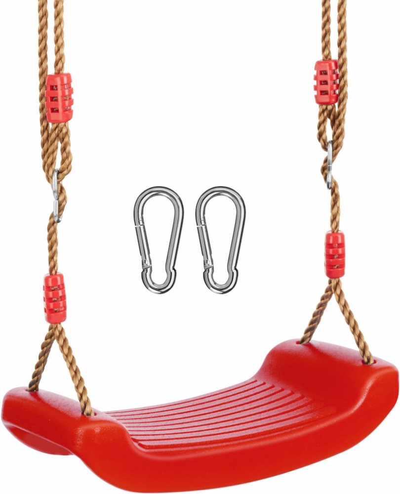 dětská, na zahradu, plastový sedák, závěsná, rostoucí, lana k zavěšení součástí, maximální nosnost 75 kg, rozměry 120 × 42 × 17 cm (V׊×D), maximální délka zavěšení 200 cm, červená a hnědá barva, 3 kusy v balení, pro děti od 5 let (405088)