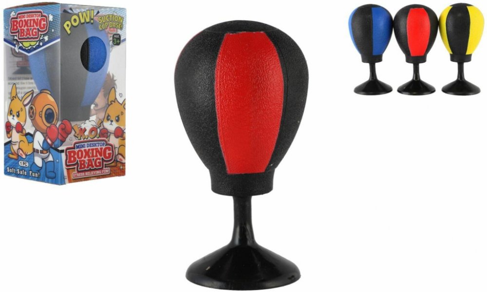 Zábavná antistresová pomůcka pro malé i velké. Mini boxovací pytel na prsty je ideální pro odreagování během práce, studia nebo volného času. Díky přísavce na spodní straně jej snadno připevníte na stůl či jiný hladký povrch a můžete začít boxovat. Měkký plastový pytel je bezpečný, lehký a vhodný i pro děti od 3 let.Velikost 7,5x15x7,5cm