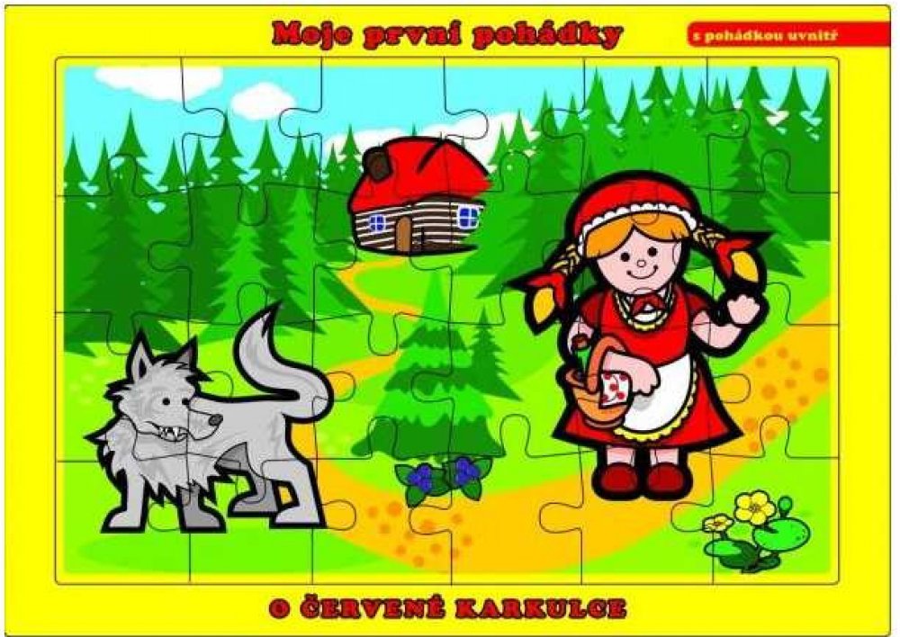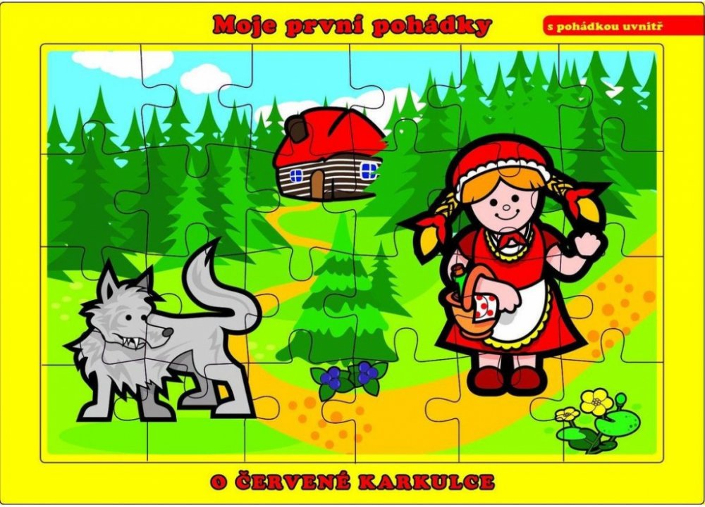 Vhodné pro děti od 3 let Deskové puzzle O Červené Karkulce je perfektním spojením pohádky a stavění puzzle, které děti milují. Pod sestaveným obrázkem s motivem tradiční české pohádky ji najdete psanou.