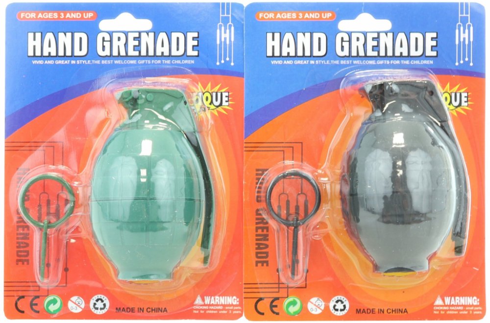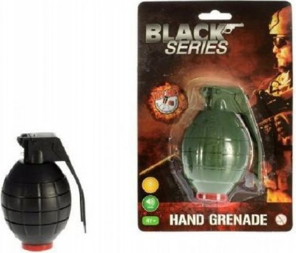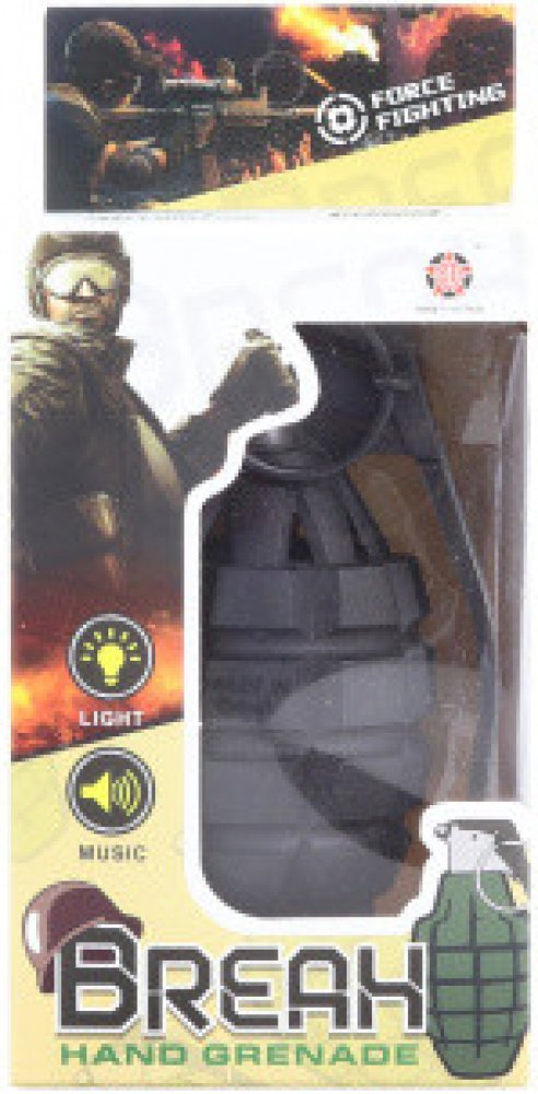 Plastový granát o rozměru cca 11 cm na baterie, které jsou součástí balení. Granát po stisknutí začne vydávat zvuky tikání a poté výbuchu. Napájení na 3 AG13 baterie (jsou součástí). Rozměr balení 16