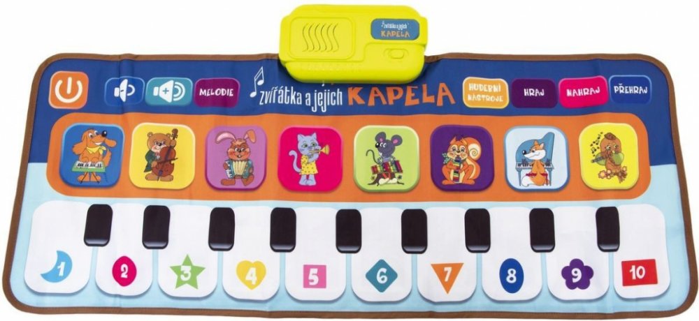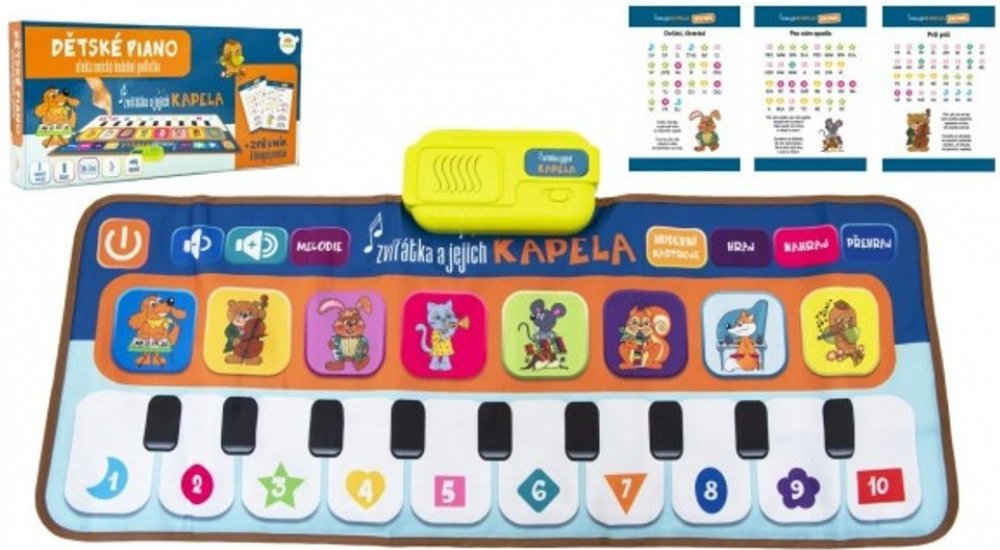 Interaktivní hrací podložka (dětské piano) z řady Zvířátka a jejich kapela je skvělou pomůckou, se kterou se děti pomocí 10 kláves učí poznávat zvuky pianka. Dále můžete naučit děti 6 lidových písniček pomocí přiloženého zpěvníku. Děti mohou hrát podle barev, tvarů nebo čísel. Obsahuje také 8 kláves s hudebními nástroji. Podložka rozvíjí zvědavost, logické myšlení, schopnost vnímat barvy, tvary a ...