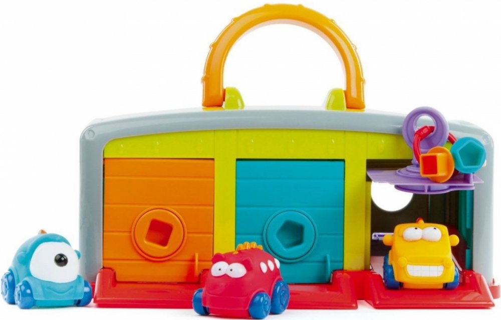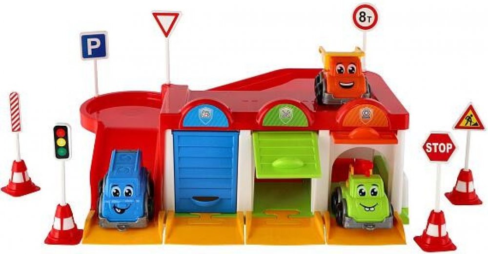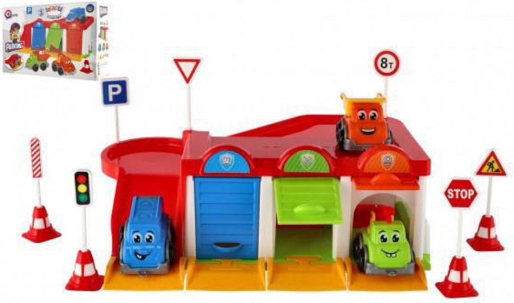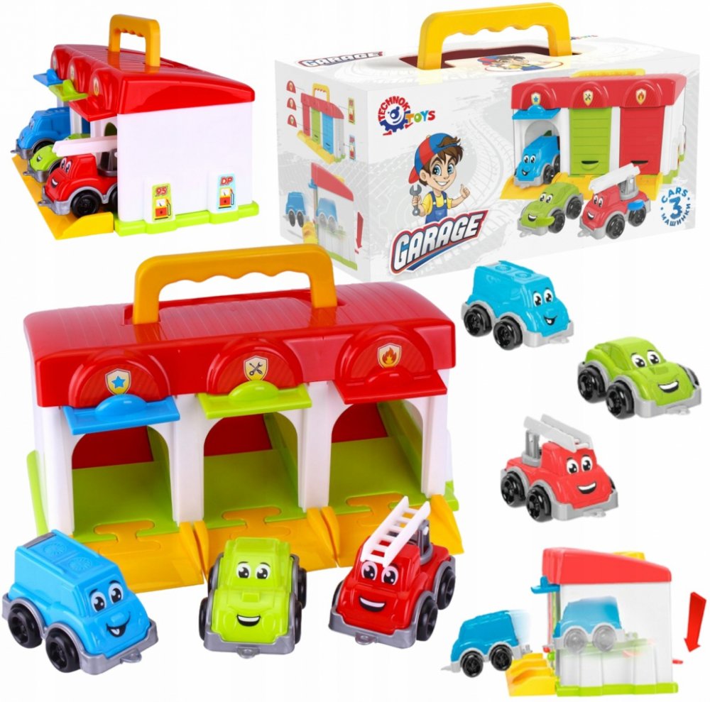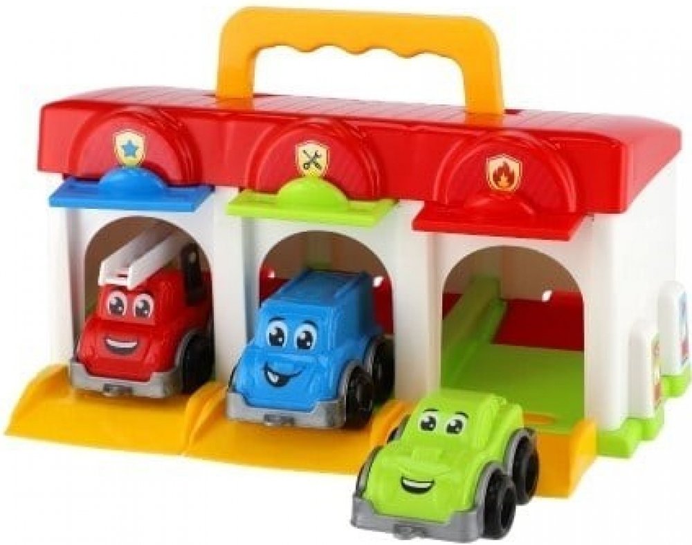 Potřebuješ mít autíčka stále při ruce a v bezpečí? Tato garáž s autíčky je ta pravá! Pod třemi dveřmi se schovávají tři auta. V garáži najdete část pro snadnější vjezd a výjezd aut do své kóje. Parkovat ale můžete i na střeše, pokud budete mít autíček více. S těmito plastovými autíčky s garáží si užiješ mnoho zábavy!