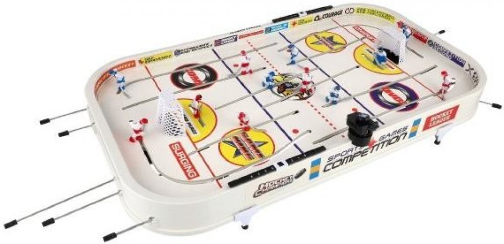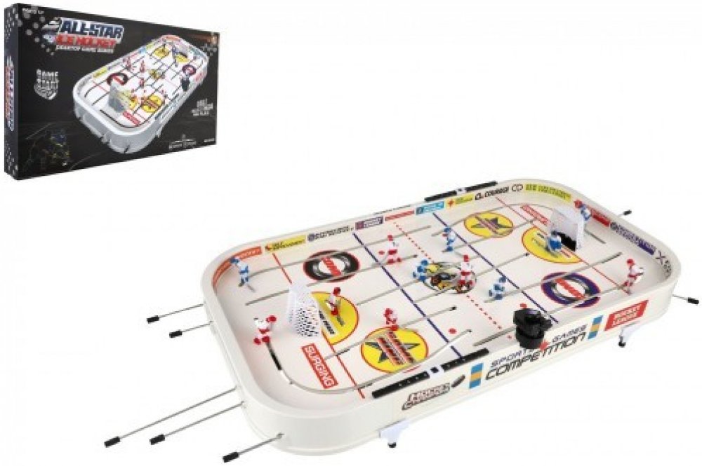 Stolní táhlový hokej představuje jedinečné a věrné zpracování ledové plochy pro ten pravý herní zážitek. Hokej je společenská hra pro malé i velké. Staň se jedním z profi hráčů a užij si hokej přímo ve vašem obýváku nebo na zahradě spolu s dalšími kamarády. Hokej disponuje kovovými táhly a je bez počítadla. Rozměry balení 98 x 58 x 12 cm. Vhodné pro děti od 4 let.