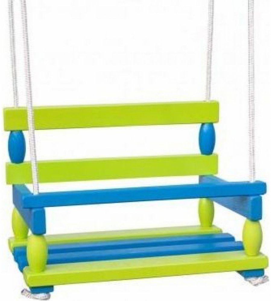 Krásná dřevěná houpačka v modro zelené barvě. Vhodná pro použití doma i na zahradě. Houpačka je bezpečná a stabilní.Rozměr sedáku 40 x 30cm.Nosnost houpačky 80kg. Vhodné od 3 let.