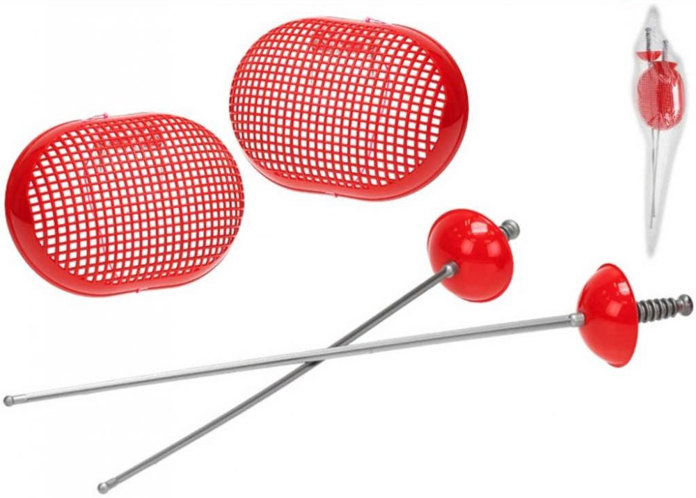 Parádní plastová sada v červené barvě pro všechny malé šermíře. Set obsahuje dva bezpečné kordy z měkkého plastu a dvě ochrany obličeje. Baleno v igelitovém pytlíku.