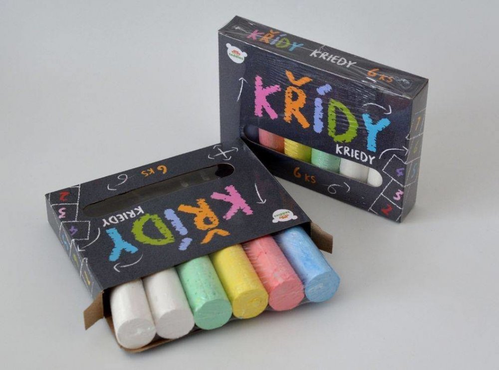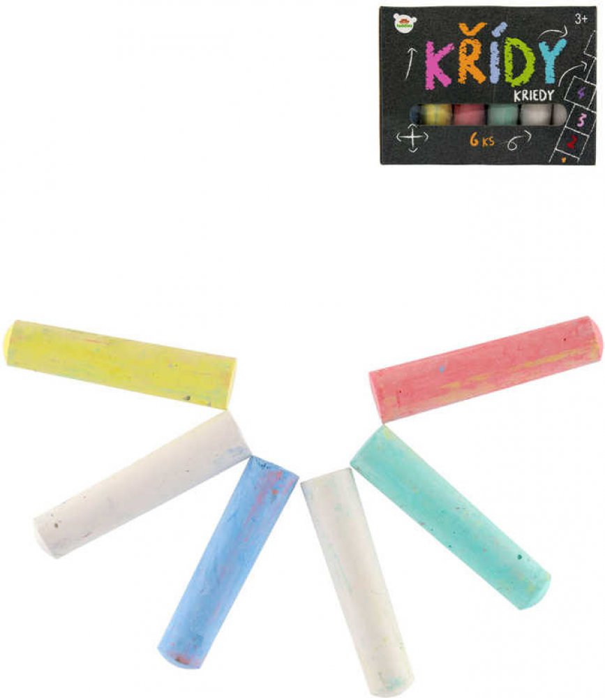 (BAL:1/60ks)Balení barevných kříd v praktické krabičce. Krabička obsahuje 6ks chodníkových kříd. Vhodné k malování na tabuli, dřevo, ale také na asfalt. Kreslení rozvíjí u dětí kreativitu, fantazii, šikovnost, zručnost, jemnou motoriku a další. ¨Rozměry balení 15 x 11 x 3 cm Vhodné pro děti od 3 letCena za jedno balení (6ks kříd)
